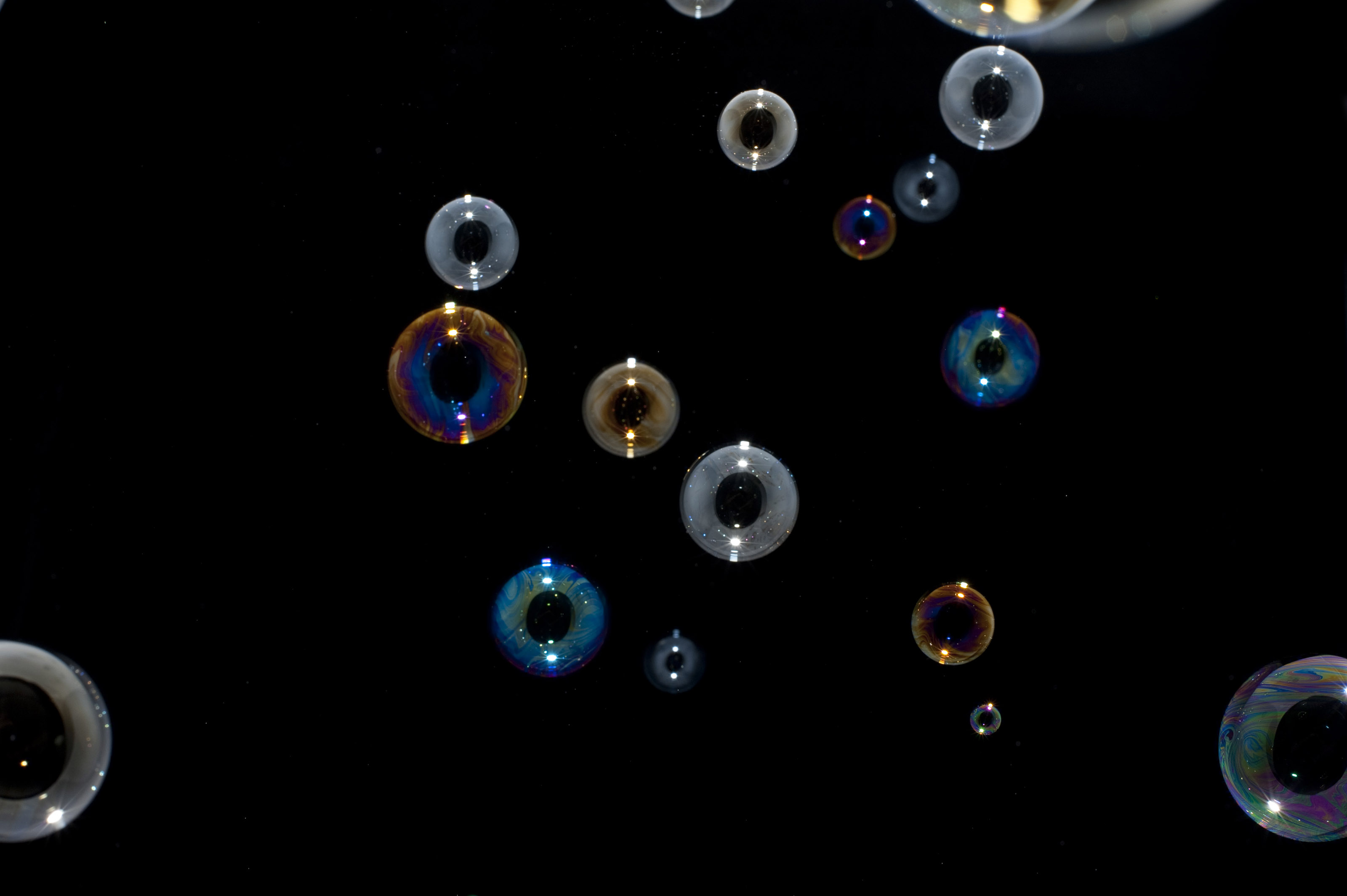 Keywords: bubble, background, black, color, multicolor, bubbles, round, sphere, translucent, clear, spherical, glassy, round, ball, light, air, floating, flying, multiple, many, assortment, different sizes, small, large