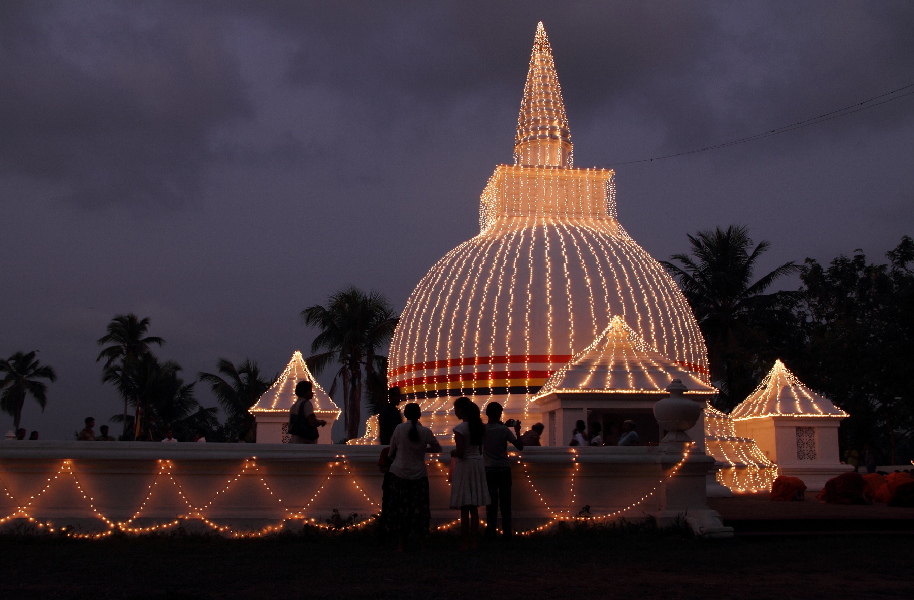 Keywords: Buddhist temple illuminated at night, Kelaniya Srilanka