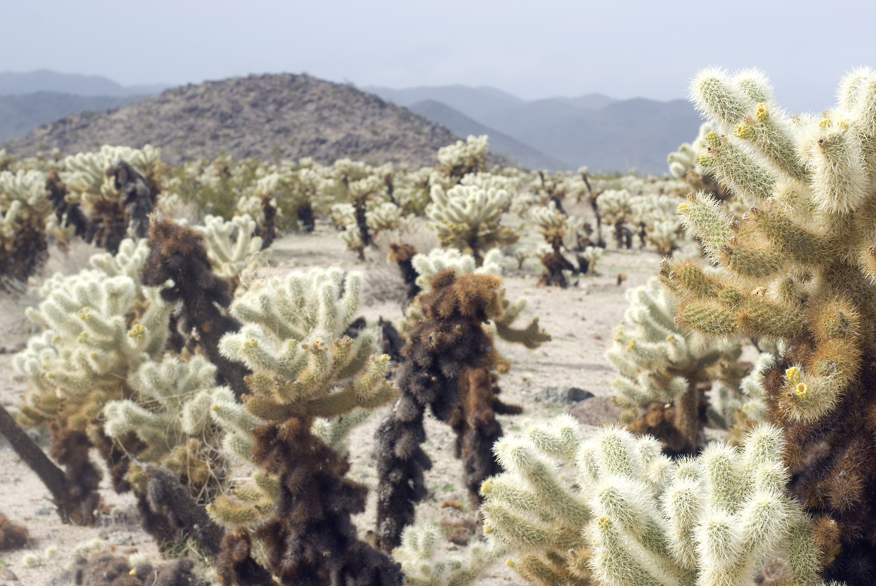 Keywords: Cholla Cactus Garden, Joshua Tree National Park, plants, cacti, desert, sky, plant, plants, sharp, throny, spike, pointed, plant, spines, barbed