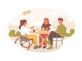 Conceptual of an outdoor cafe society with people seated at tables at an open-air restaurant enjoying refreshments in the sunshine