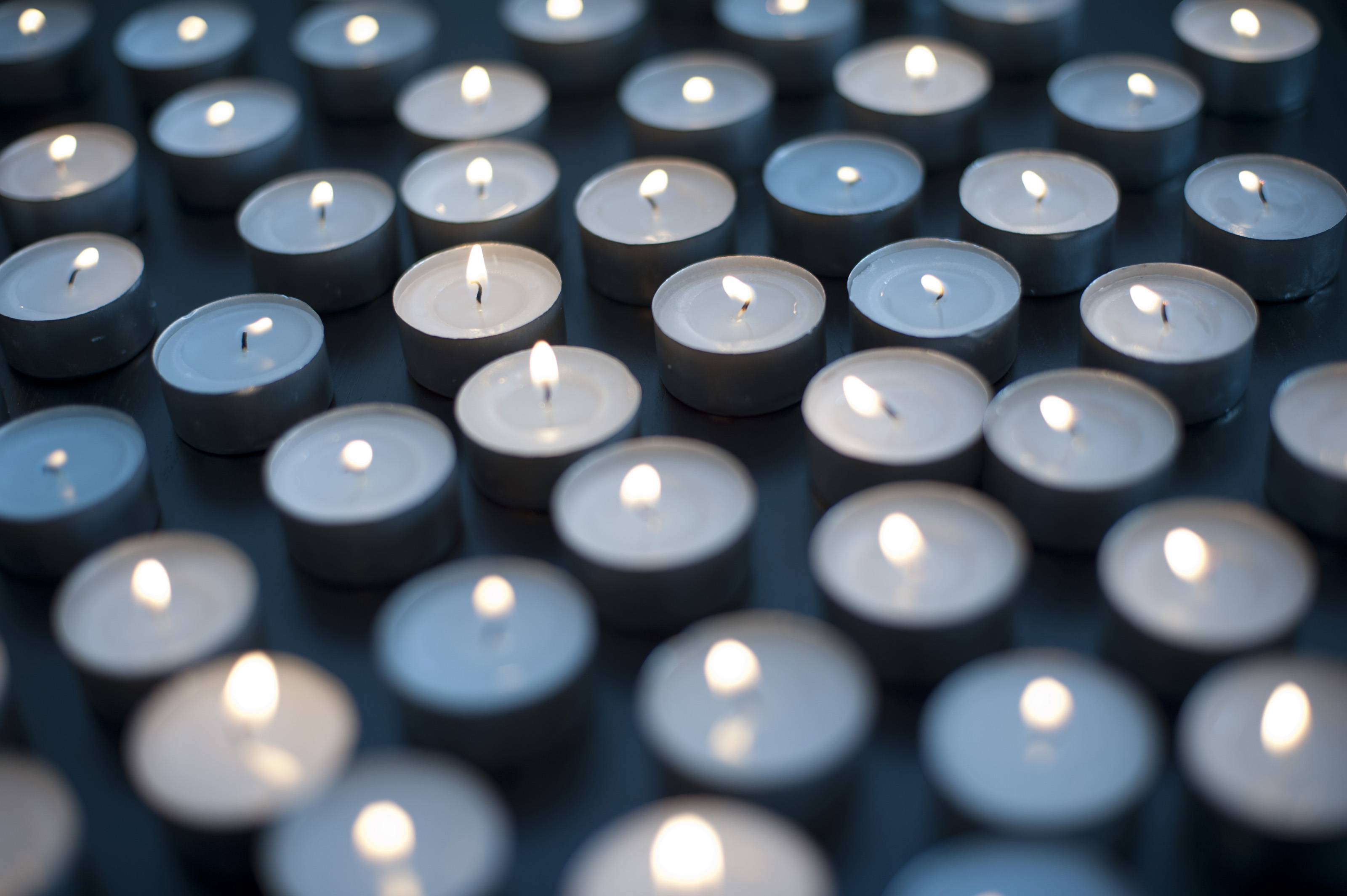 Burning candle backdrop with a myriad of small round candles close together celebrating a festivity or as a memorial or vigil to a loved one