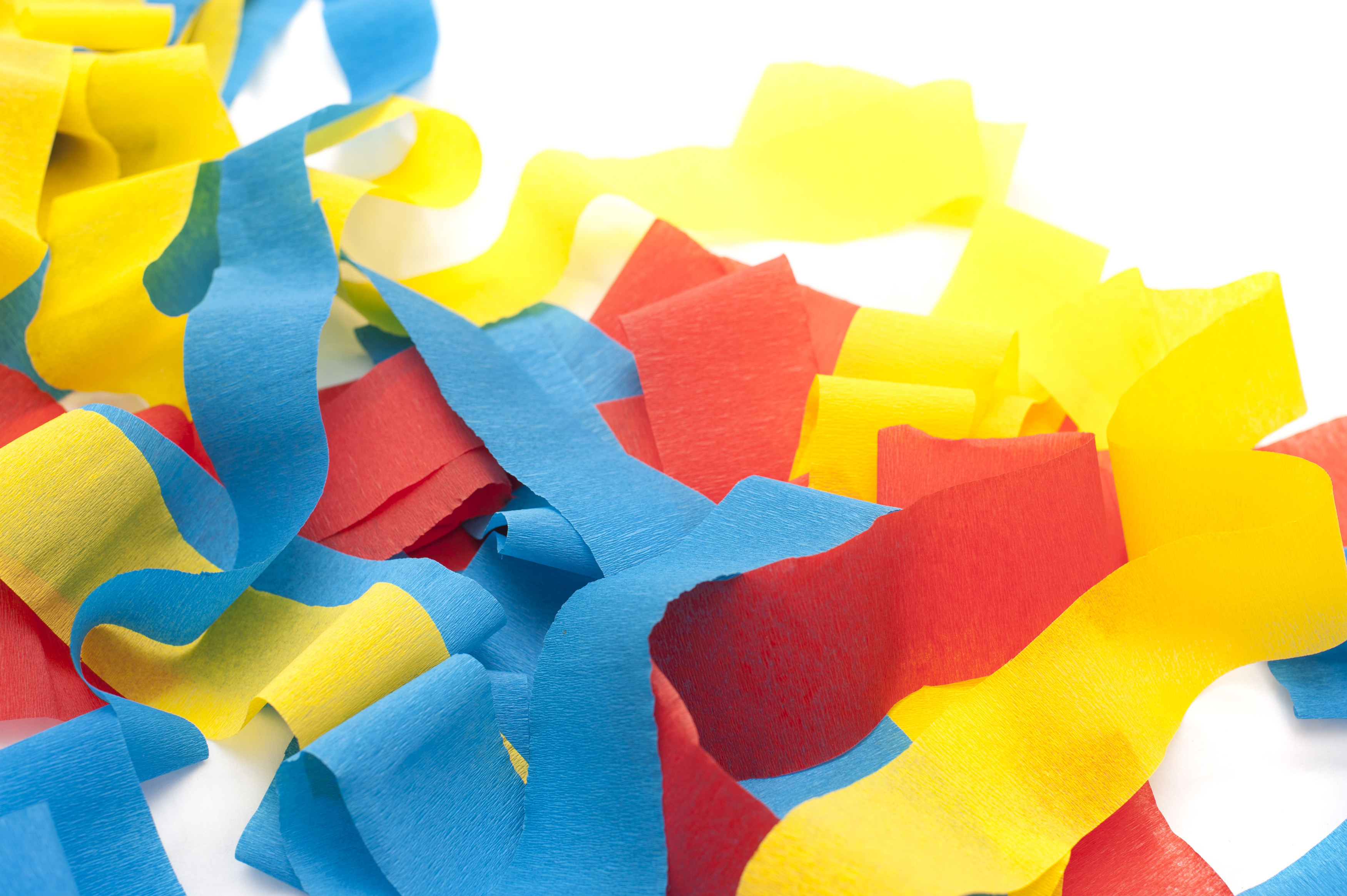 Keywords: blue, celebration, colored, crepe, paper, party, red, streamers, yellow, festive, holiday, carnival, festival, new year, anniversary, bright