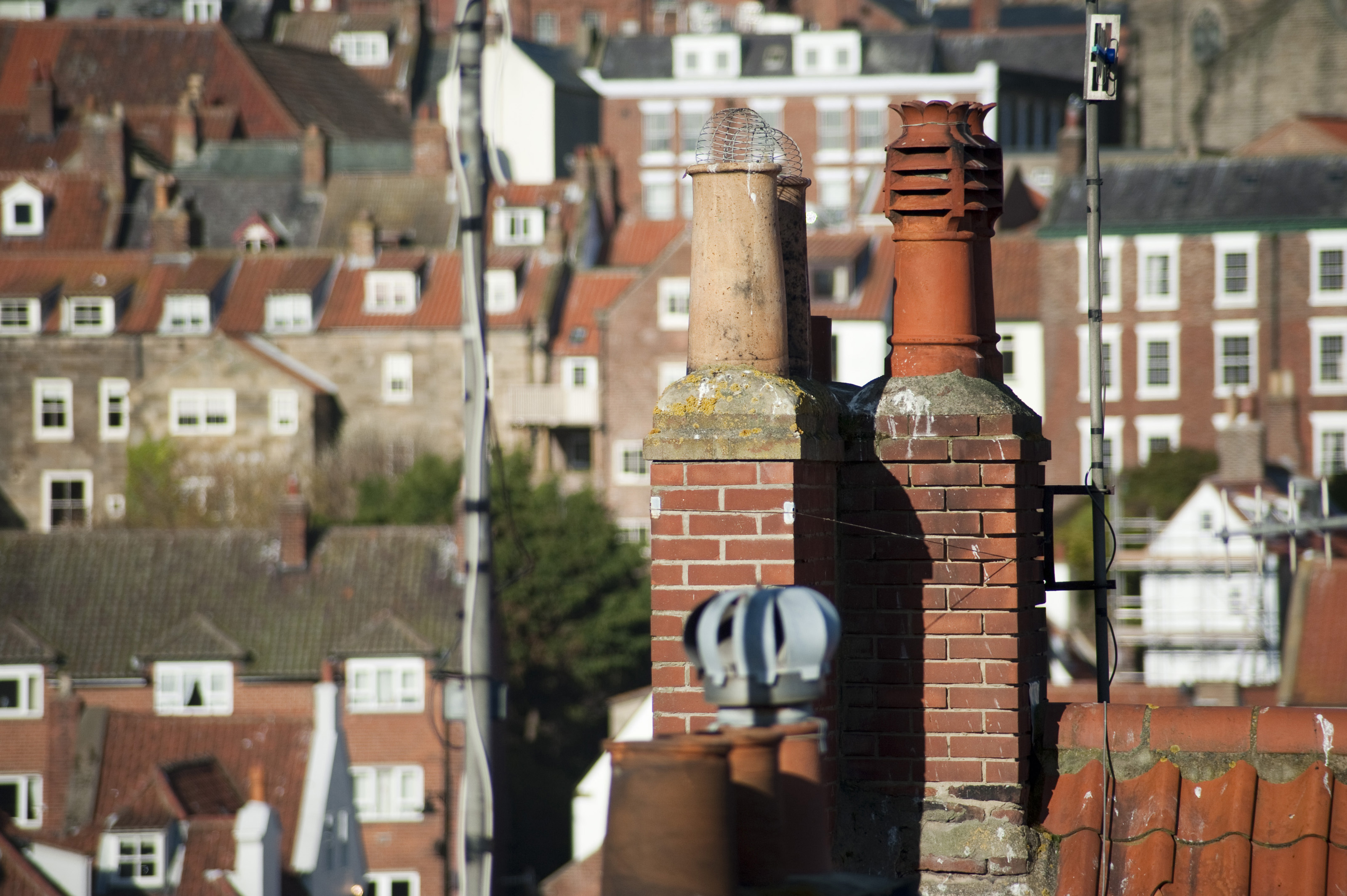Keywords: whitby, north yorkshire, england, chimney, air, smoke, architectural, domestic, flow, clay, stacks, fires, rooftop, pots, chimneys, earthenware, house, brick, town, residential