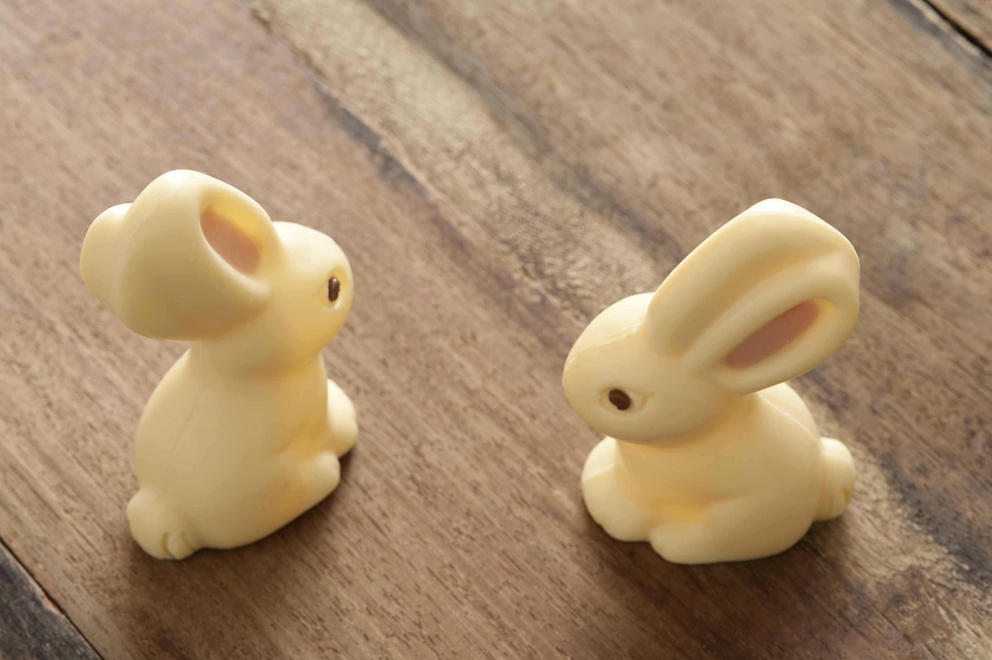 Keywords: bunny, candy, chocolate, easter, egg, rabbit, sweet, celebration, holiday, white, milky, two, copy space, baby, wood