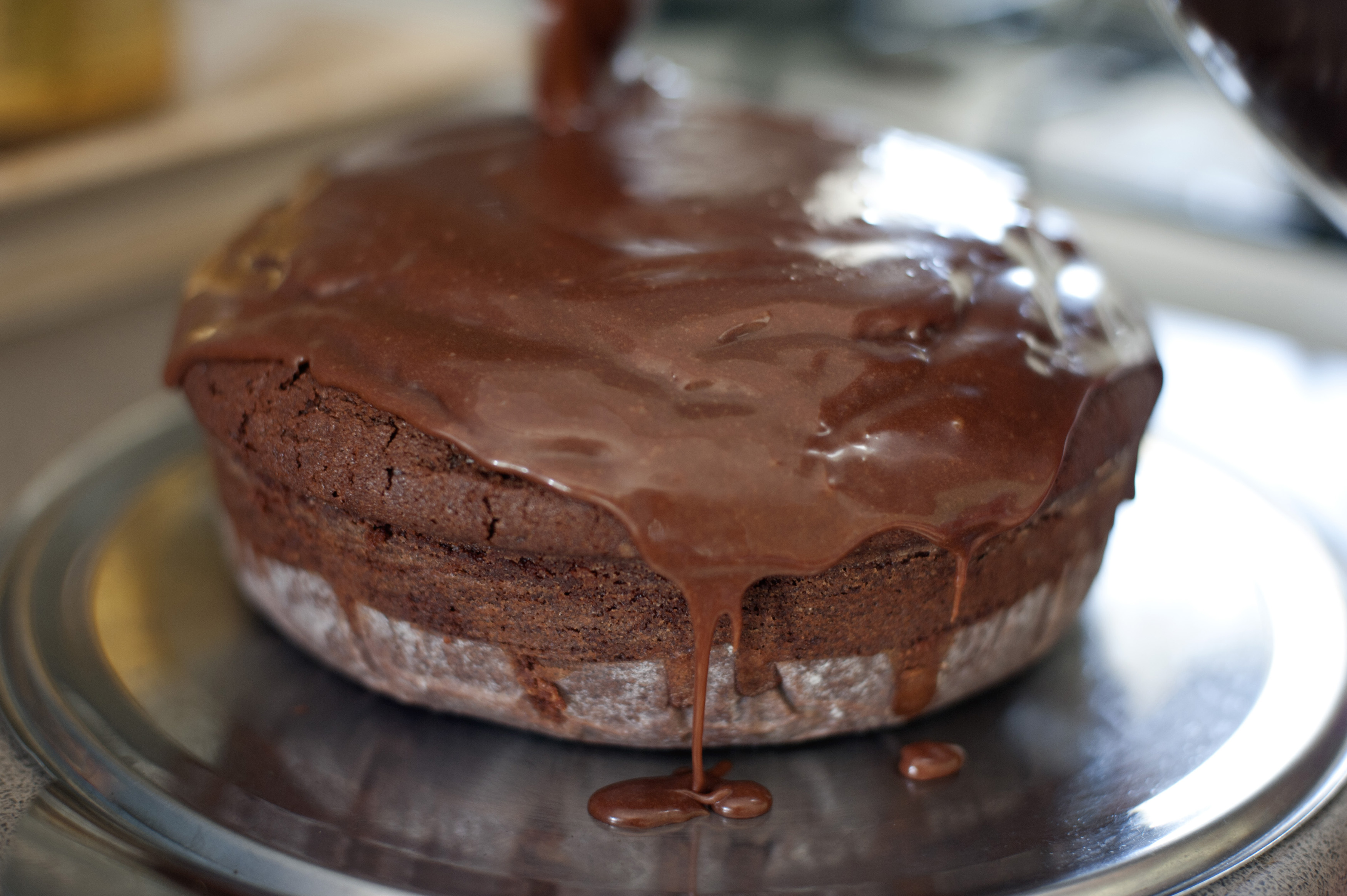 Keywords: baked, cake, chocolate, food, freshly, iced, icing, side view, sponge, sumptuous