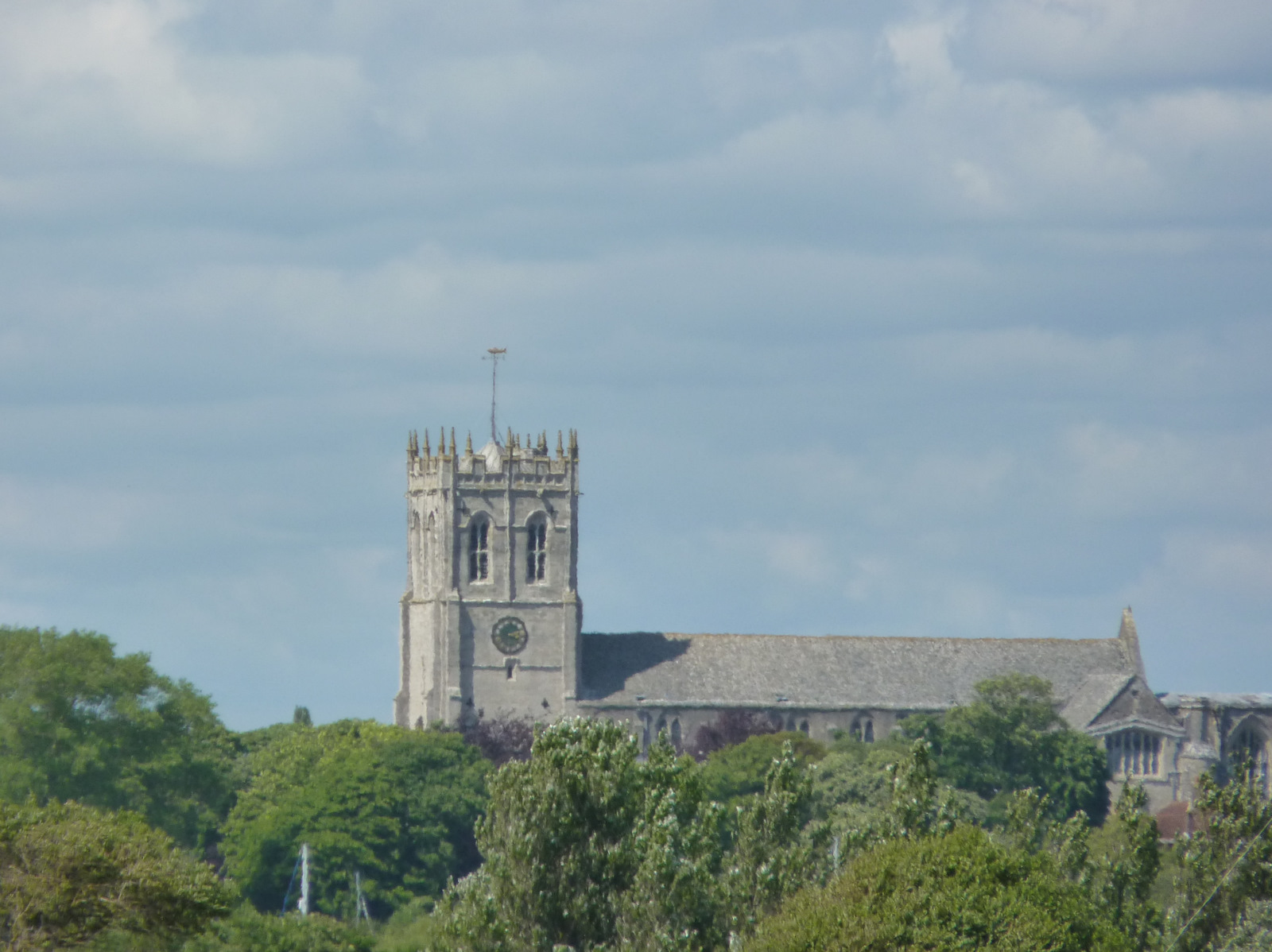 This is an image of the Priory at Christchurch taken from the lower slopes of Hengistbury Head