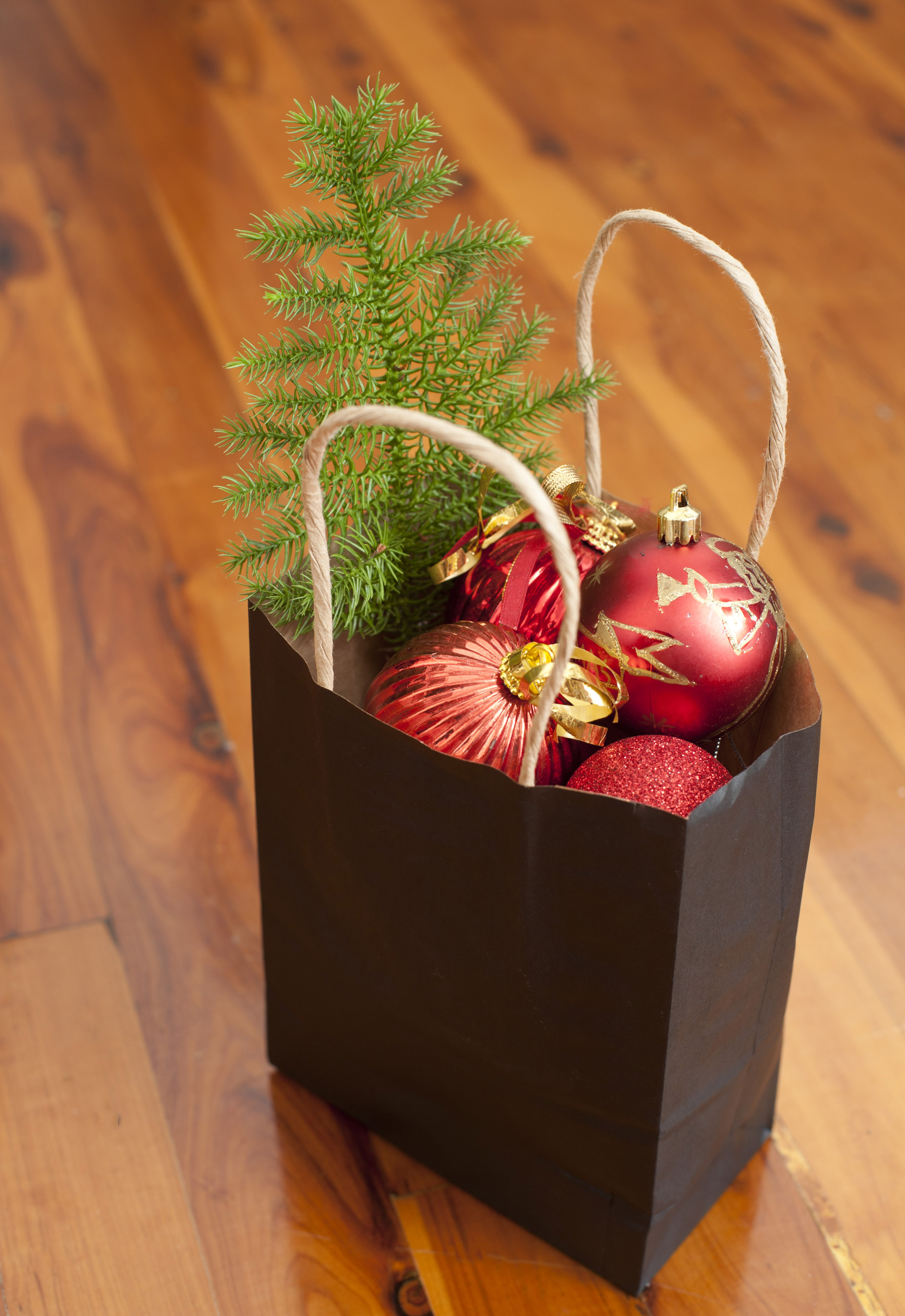 Photo Title: Paper bag filled with Christmas decorations