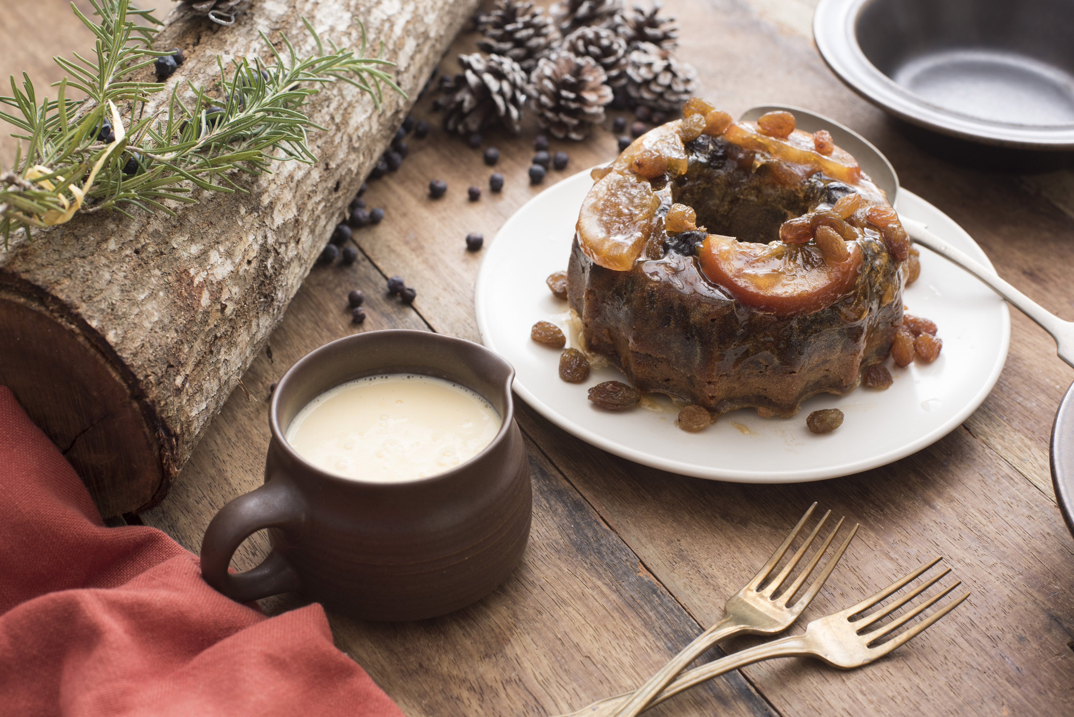 Keywords: christmas, fruit, holiday, plum, pudding, dessert, traditional, boiled, raisins, jug, custard, brandy, sauce, served, table