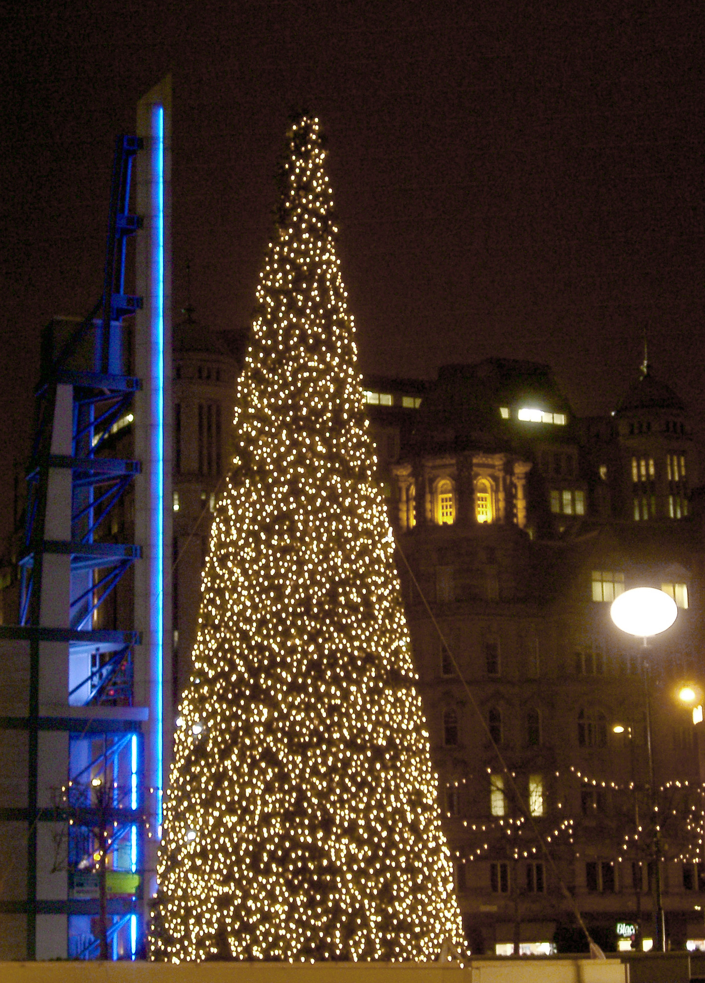 a modern urban christmas tree decoration, central manchester, uk