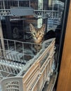 Keywords: metal, dirty, hygiene, cleaning, interior, electrical, domestic, household, wash, kitchen, appliance, stacked, cleanliness, crockery, plates, racks, mugs, stainless steel, dishes, dishwasher