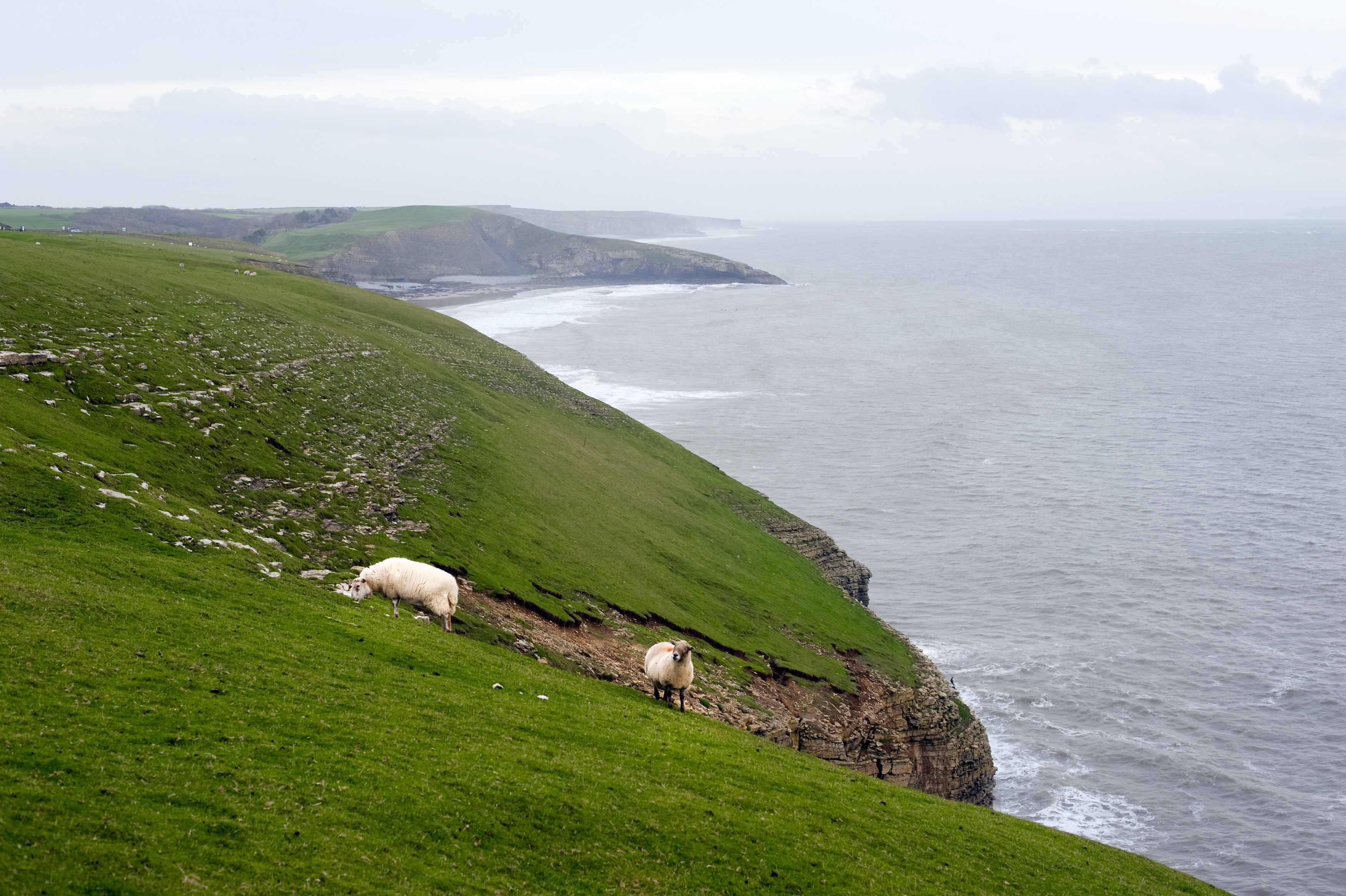 Keywords: animal, coastal, farm, grazing, green, headland, lush, pasture, sheep, steep, ewes, livestock, agriculture, cliffs, ocean