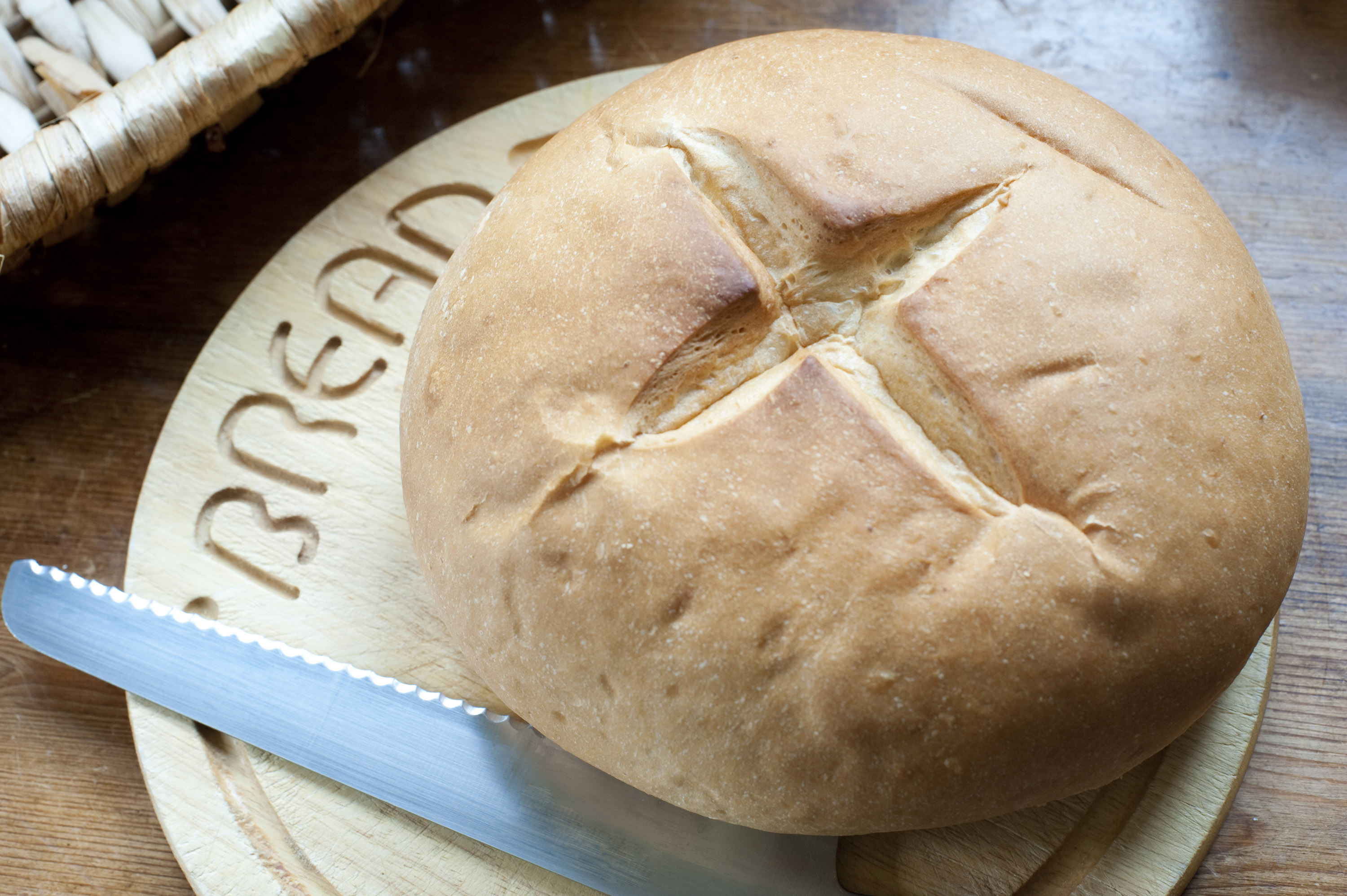 Keywords: accompaniment, baked, baking, bread, bread board, bread roll, carbohydrate, cob roll, crisp, crusty, food, loaf, nutrition, roll, round, snack, staple, wheat, white, whole