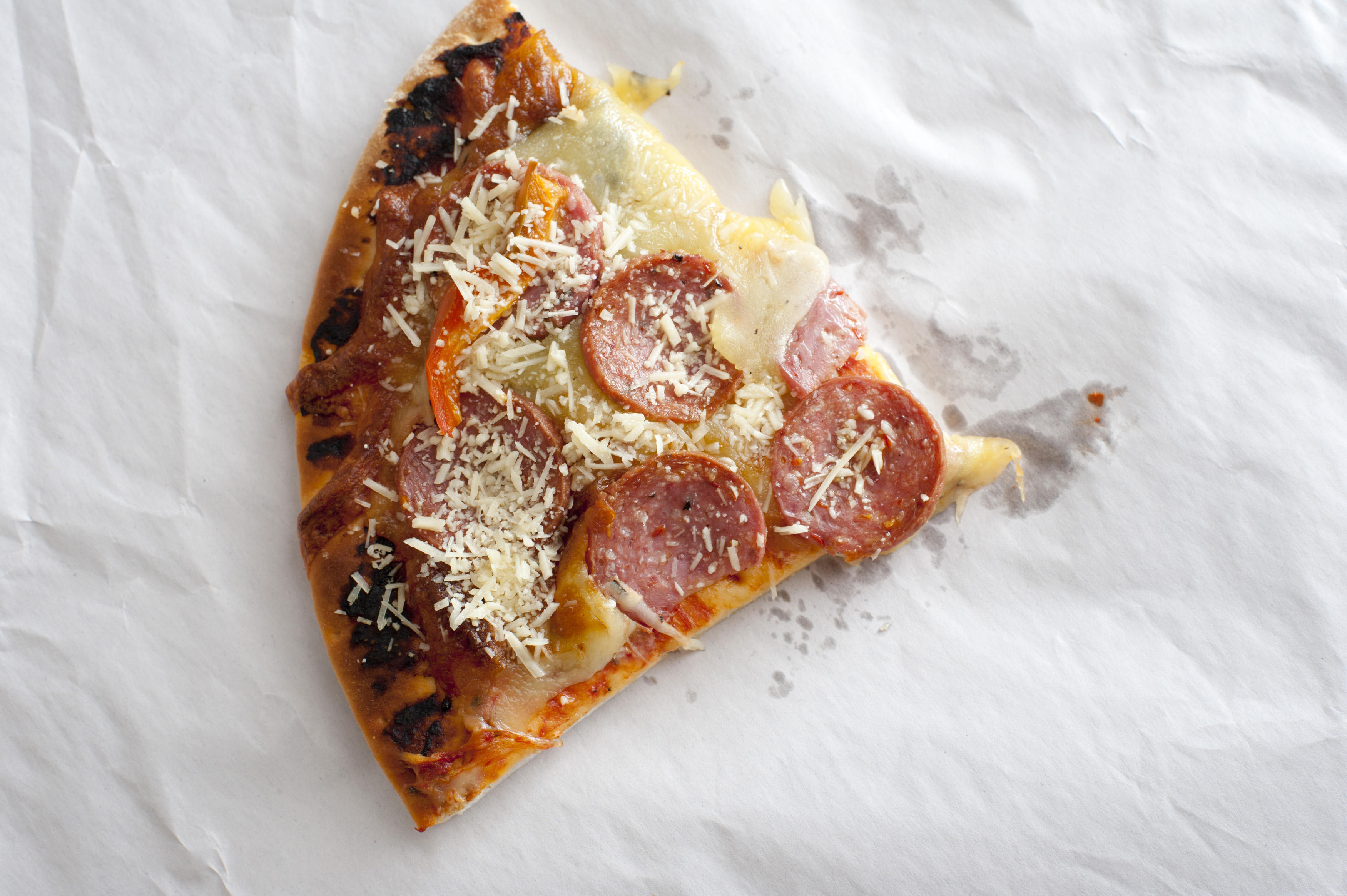 12748 unappetising slice of pepperoni pizza with peppers - this image by freefoodphotos is licensed under a Creative Commons Attribution 3.0 Unported License.