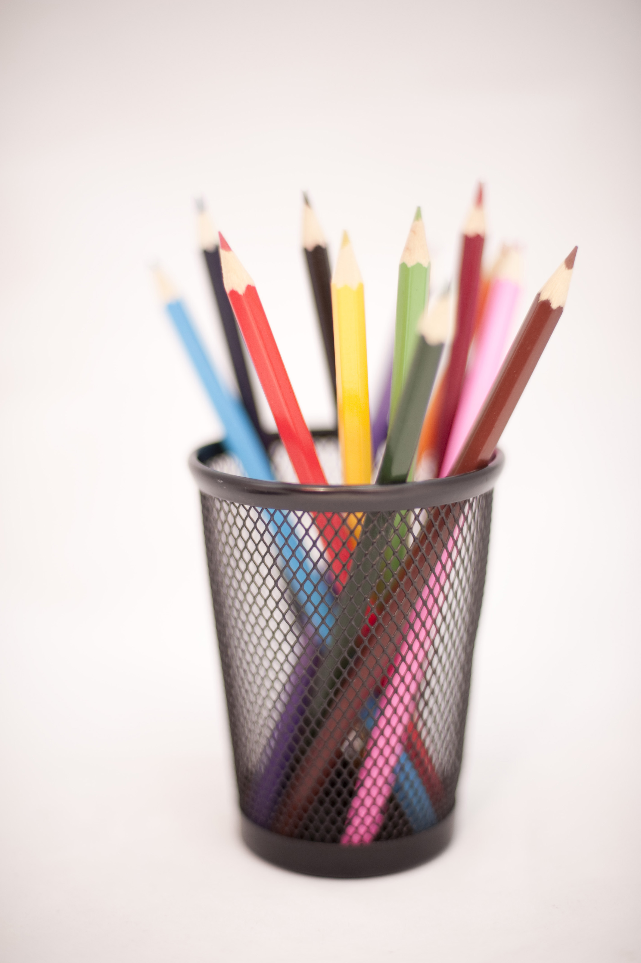 Keywords: black, pen, objects, container, equipment, colorful, colors, office, school, holder, colored, multicolored, crayon, basket, pencils