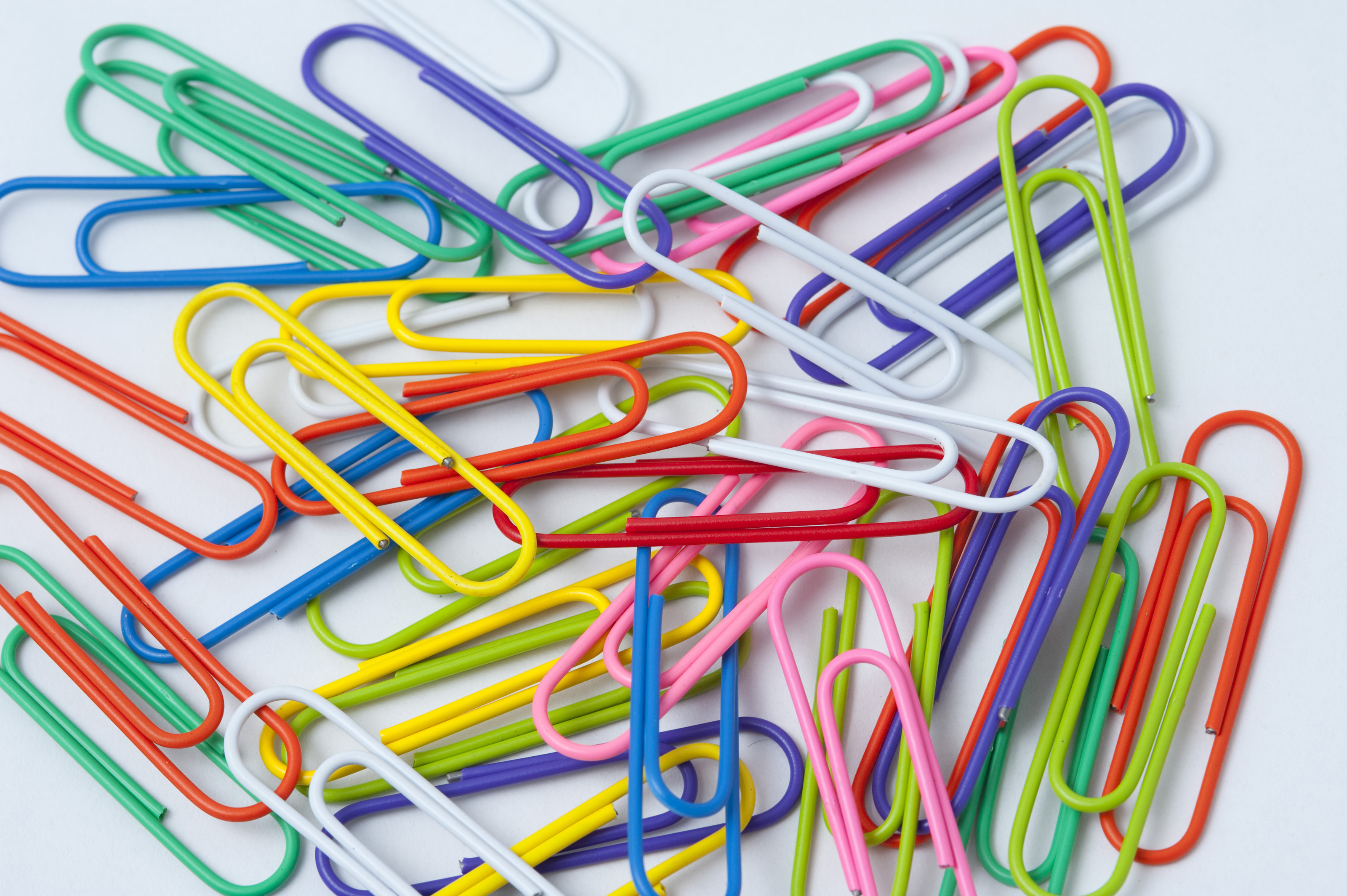 Keywords: business, paper, backdrop, colourful, office, random, clips, stationery, attach, supplies, join, multicoloured, scattered, paperclips, organise