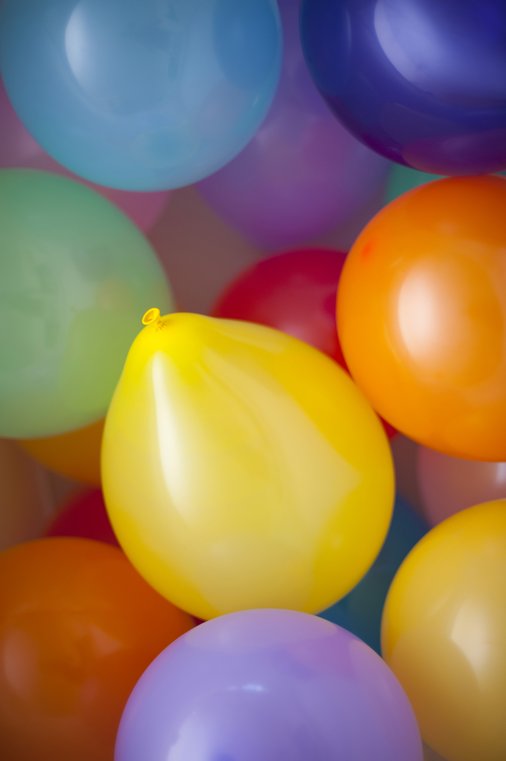 an arrangement of inflated rubber balloons of various colors