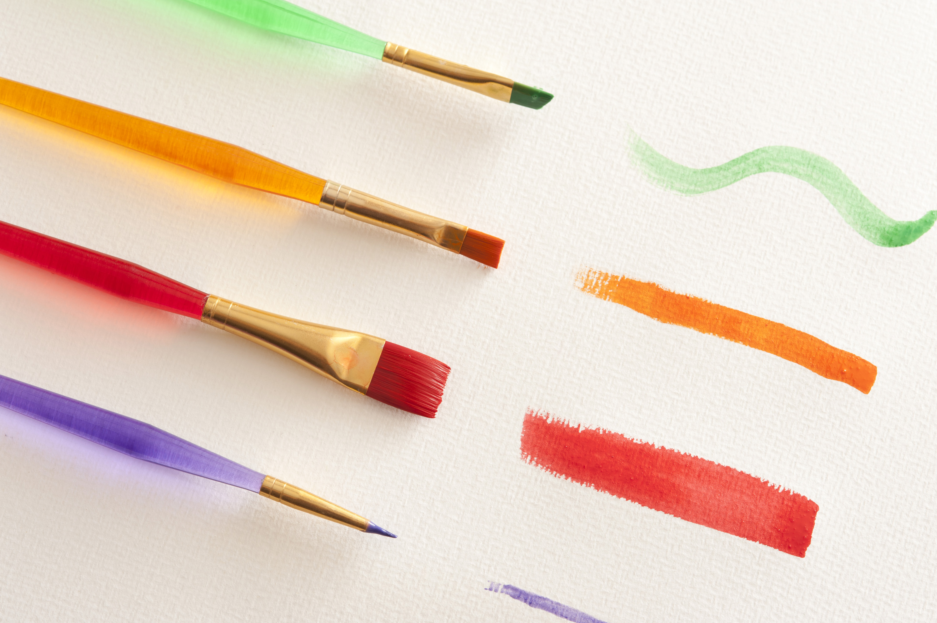 Keywords: art, colors, creativity, different, four, paint, paintbrushes, paper, sizes, textured, thickness, watercolor, brushstrokes, colorful, supplies, red, green, orange