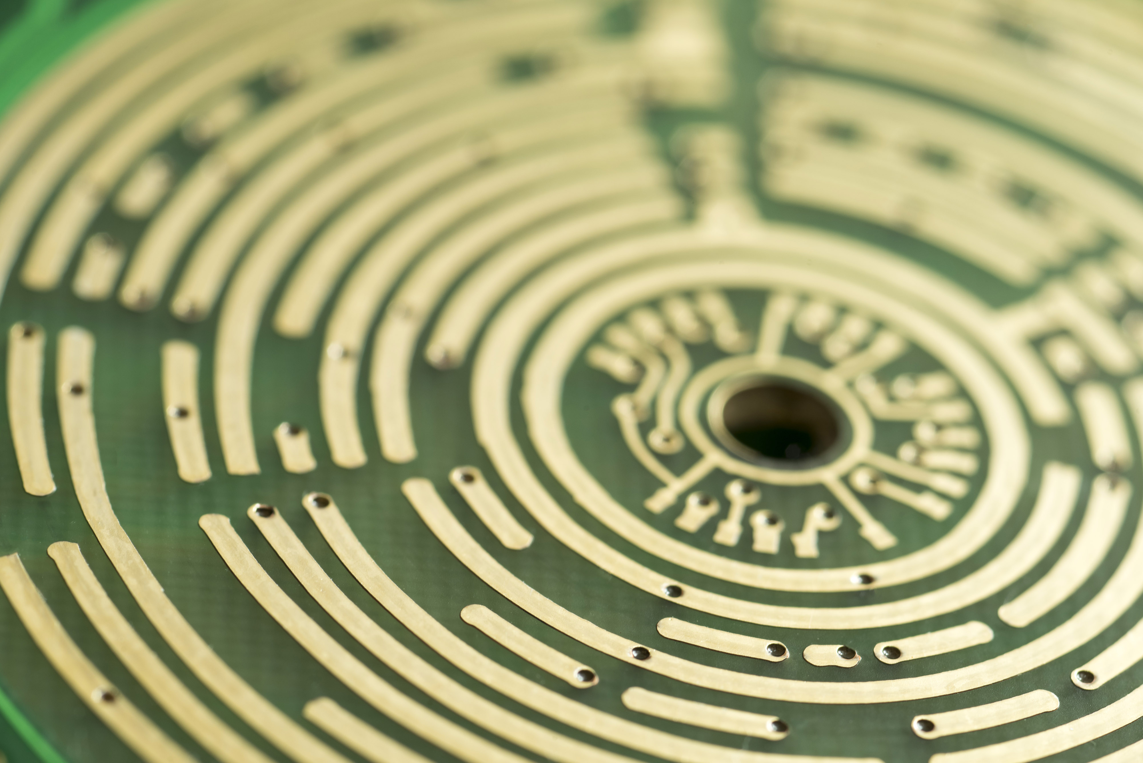Keywords: tracks, copper, curves, concentric, circle, circular, curved, macro, green