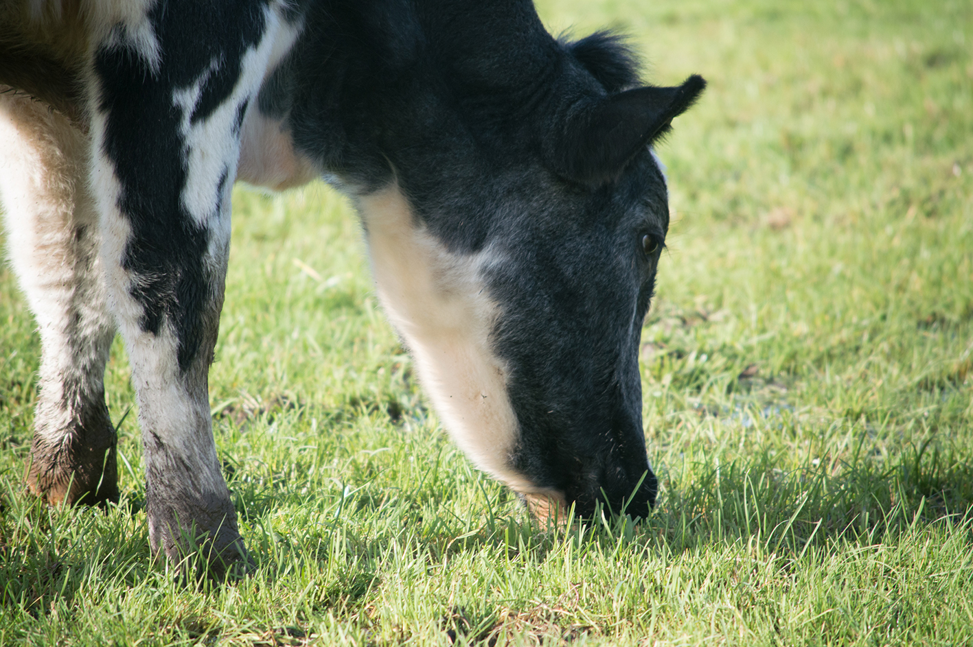 Keywords: cow, black, white, grass, field, eat, dinner, uk, british, green, farm