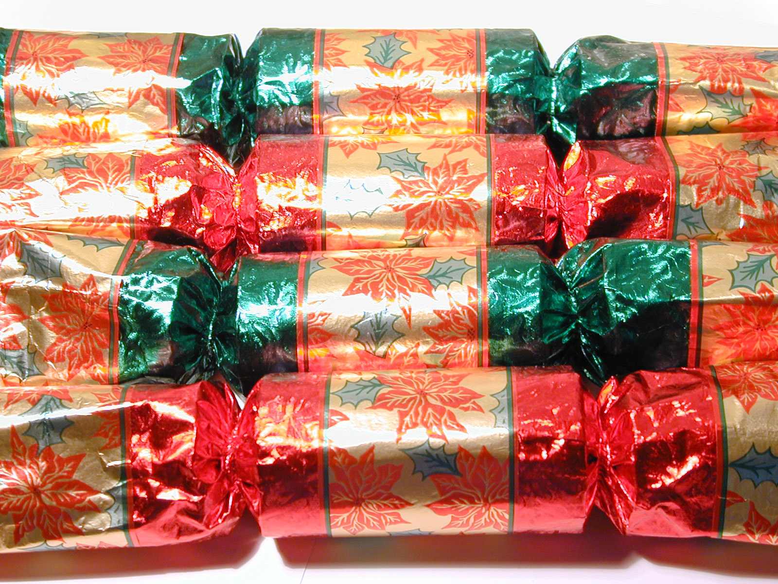 Keywords: christmas, colorful, crackers, festive, gold, patterned, poinsettia, traditional, celebration, favors, noel, holiday, foil, surprise, row