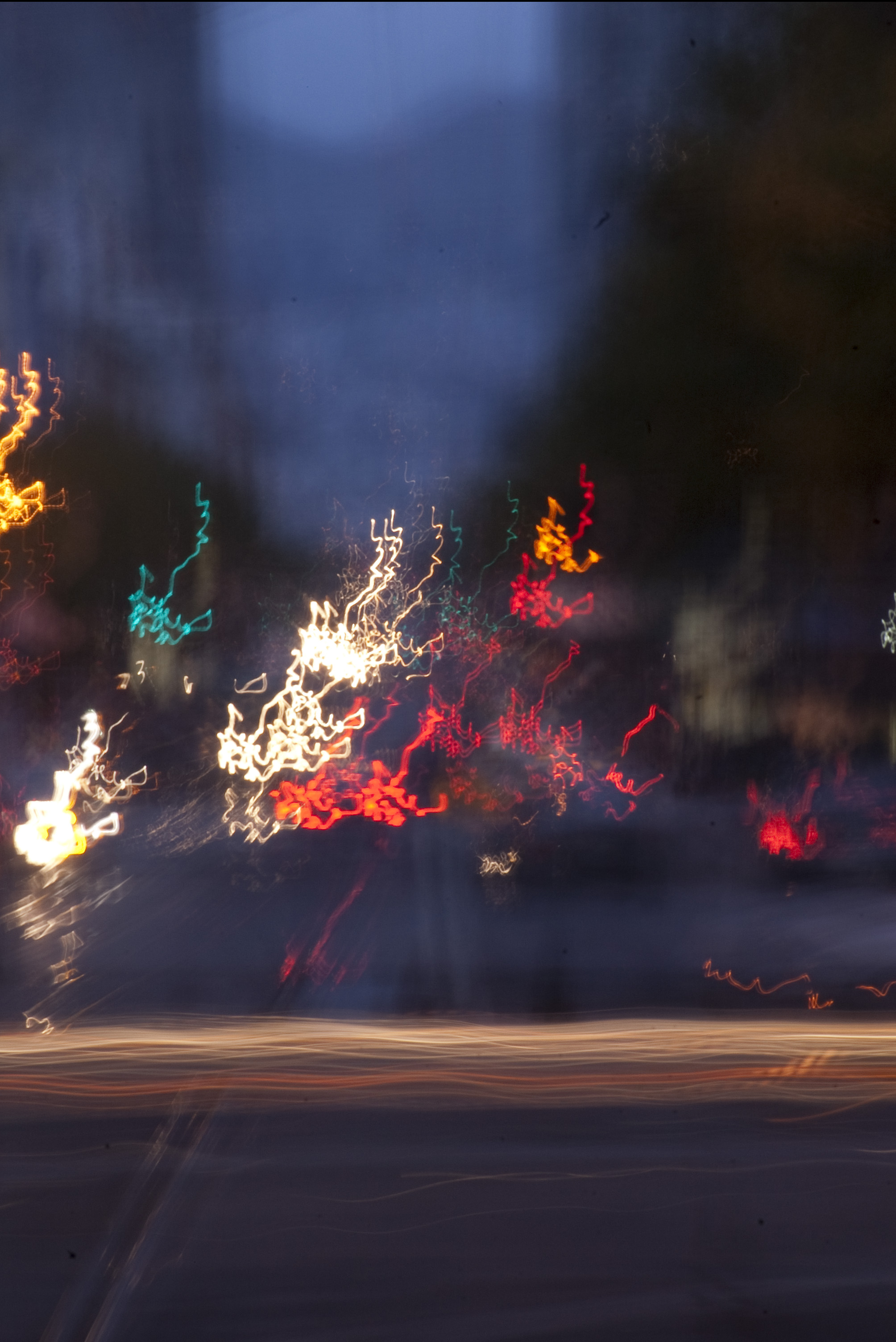 Keywords: blur, abstract, san francisco, urban, city, blury, blurred, tran line, trolly bus rails, drunk, blurry, blurred, dusk, darkness, twilight