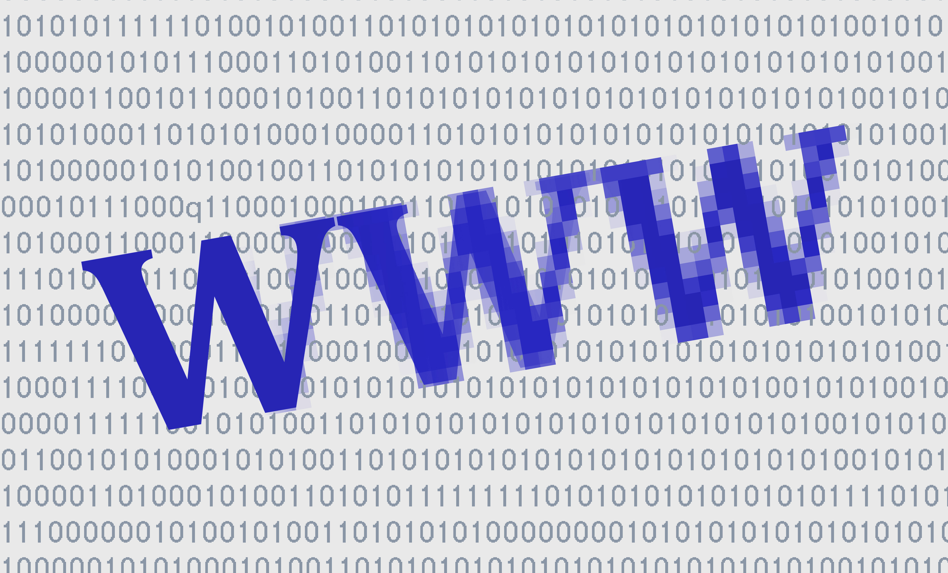 the letters www in blue (world wide web) on a background of 'digital numbers'