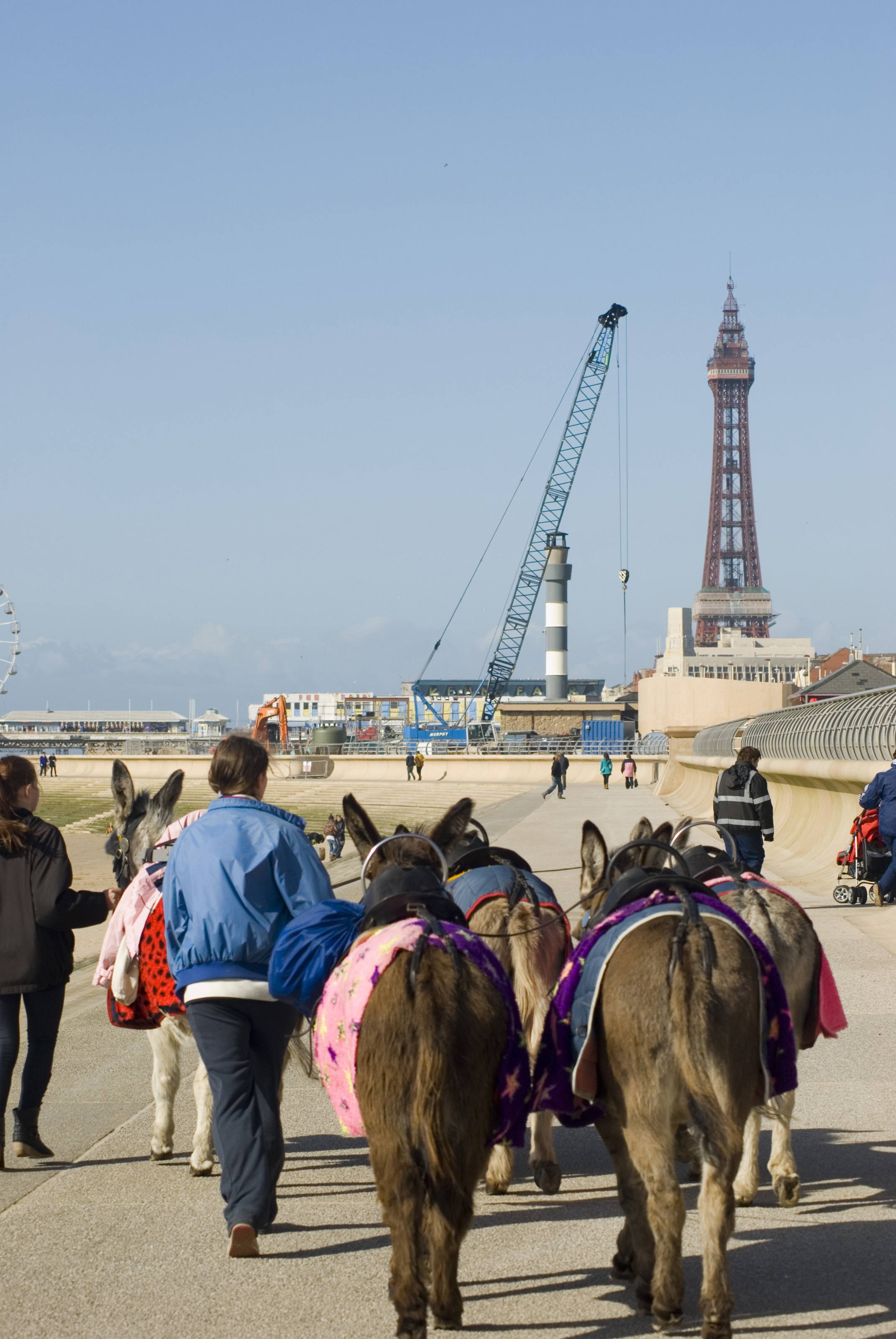 Keywords: blackpool, lancashire, england, vacation, people, building, britain, tourism, coastal, coast, tower, resort, landmark, promenade, blackpool tower, brown, walk, animals, attraction, trot, donkeys, donkey rides, donkies, famoust