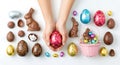Keywords: holiday, colourful, shapes, foil, celebration, many, candy, chocolate, eggs, easter, assortment, confectionery, rabbit, bunny, bowtie