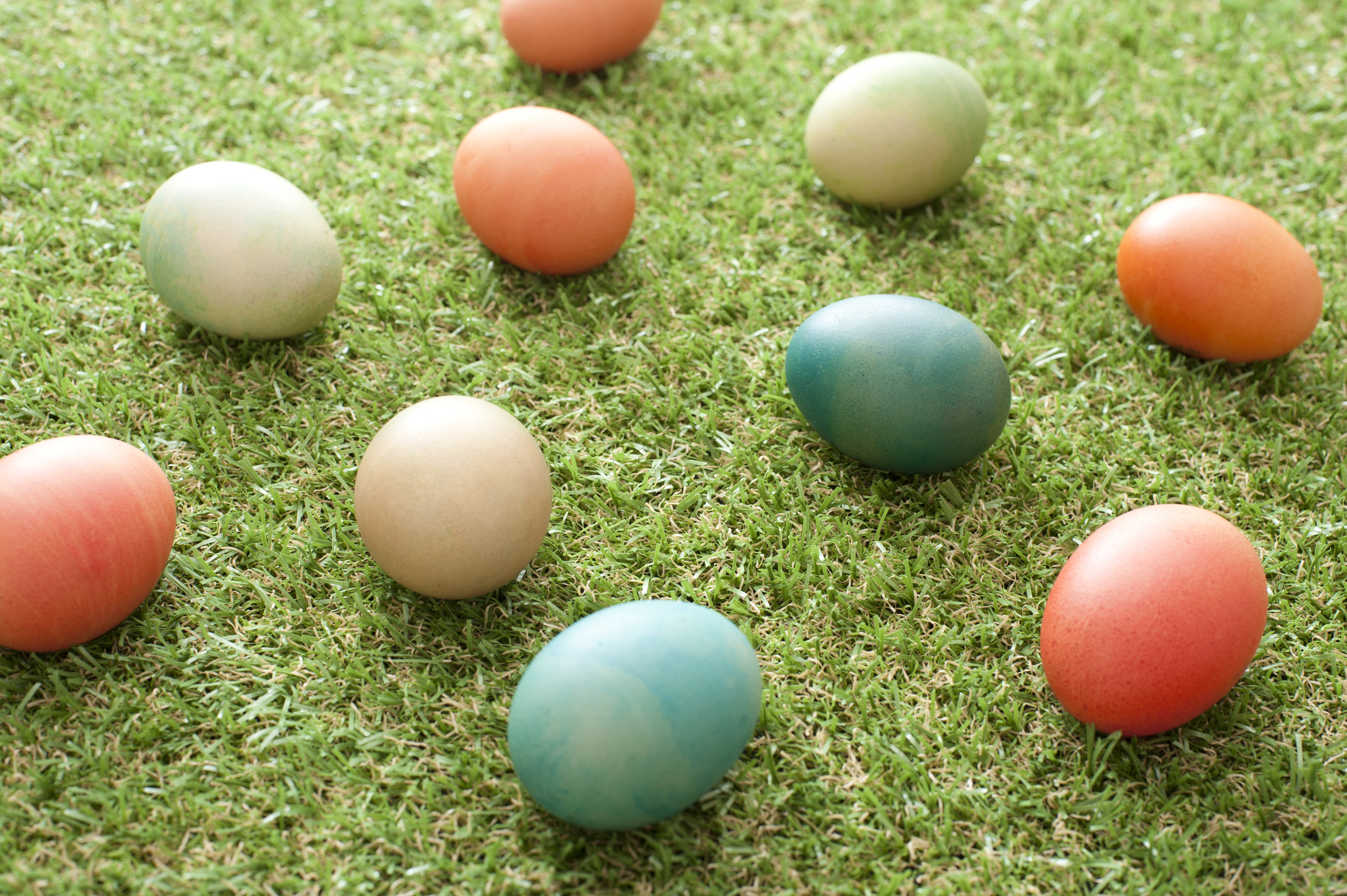 Keywords: colorful, dyed, easter, eggs, holiday, homemade, background, grass, scattered, spring, egg hunt, celebration, multicolored, green, handicraft