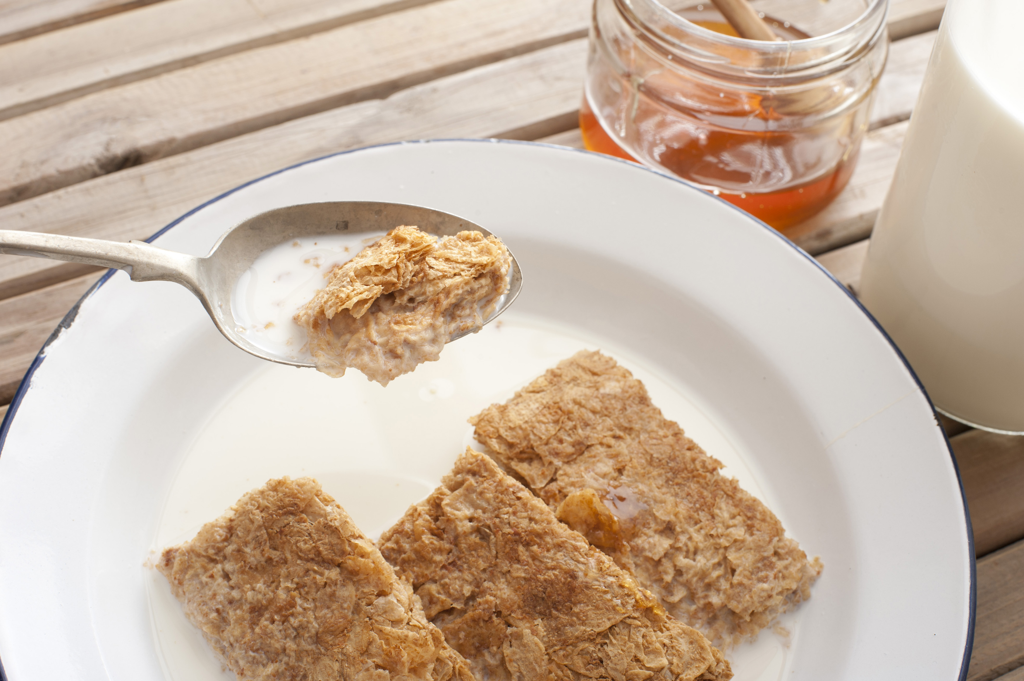 Keywords: biscuits, bowl, breakfast, cereal, eating, grain, honey, milk, shredded, spoon, wheat, food, healthy, sweetener, gluten