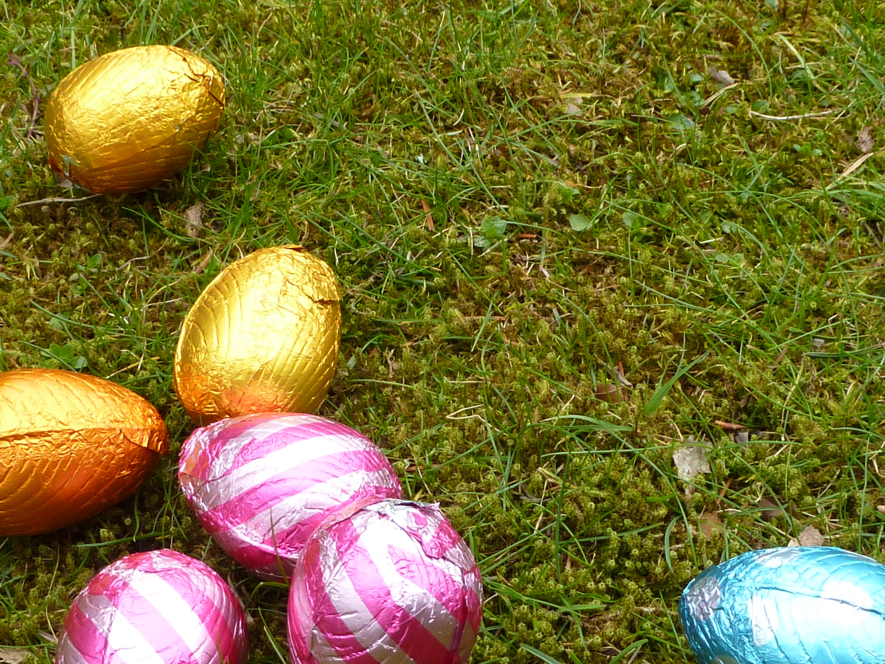 17349 Colorful chocolate Easter eggs on the ground - this image by easterstockphotos is licensed under a Creative Commons Attribution 3.0 Unported License.