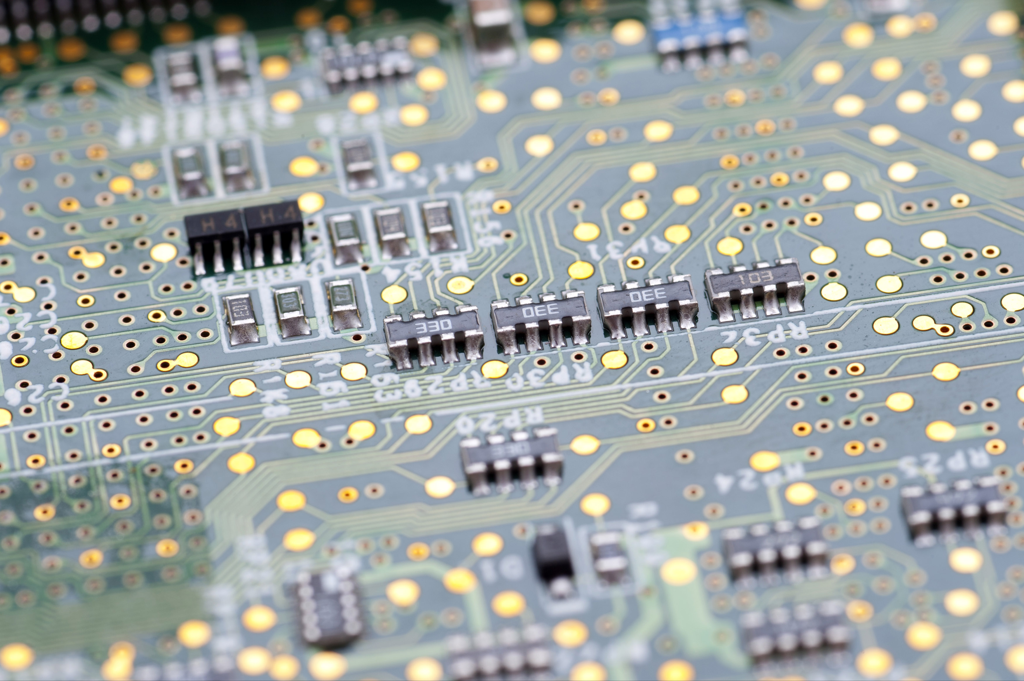 Keywords: electronics, close-up, board, circuit, full frame, green, macro, motherboard, selective focus, side, small, components, abstract, background, hardware, resistor packs, surface mount
