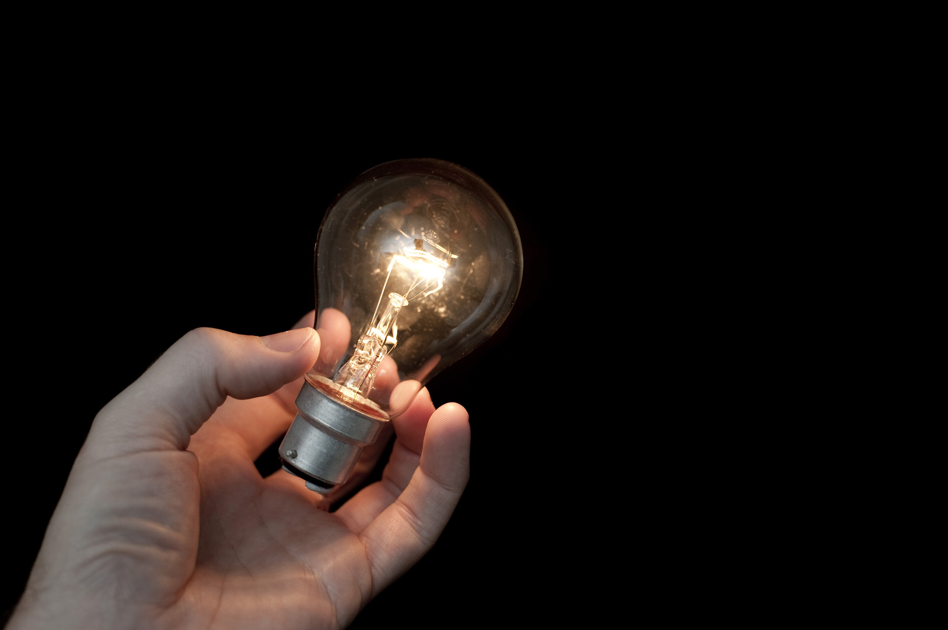 a light globe seemingly spontaneously glowing in someones hand
