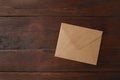 Close up Conceptual Closed Brown Envelope on Wooden Table, Emphasizing Copy Space