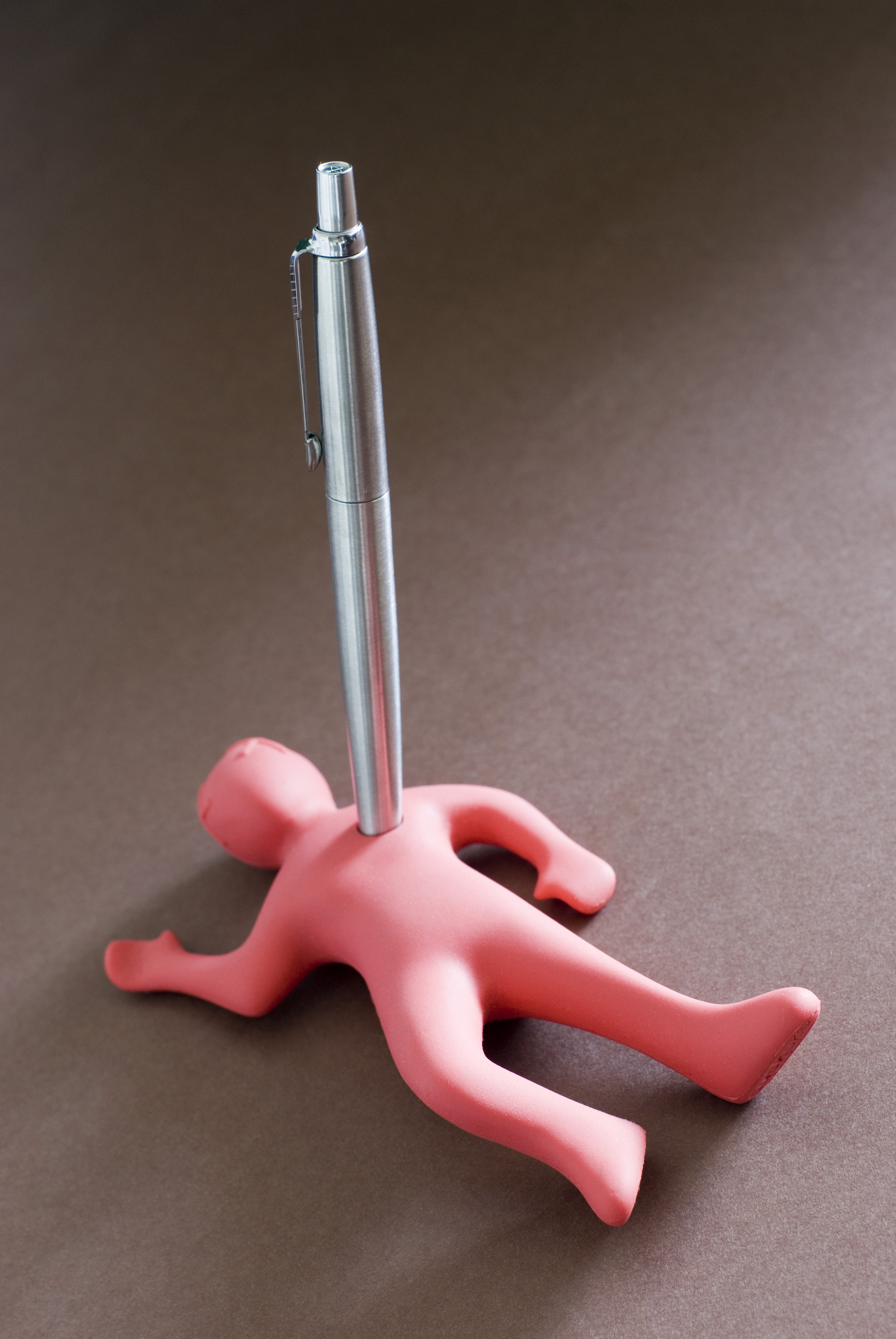 Keywords: business, concept, dead, figure, management, pen, pink, problem, stabbed, trouble, copy space, ballpoint, executive, murder, suicide