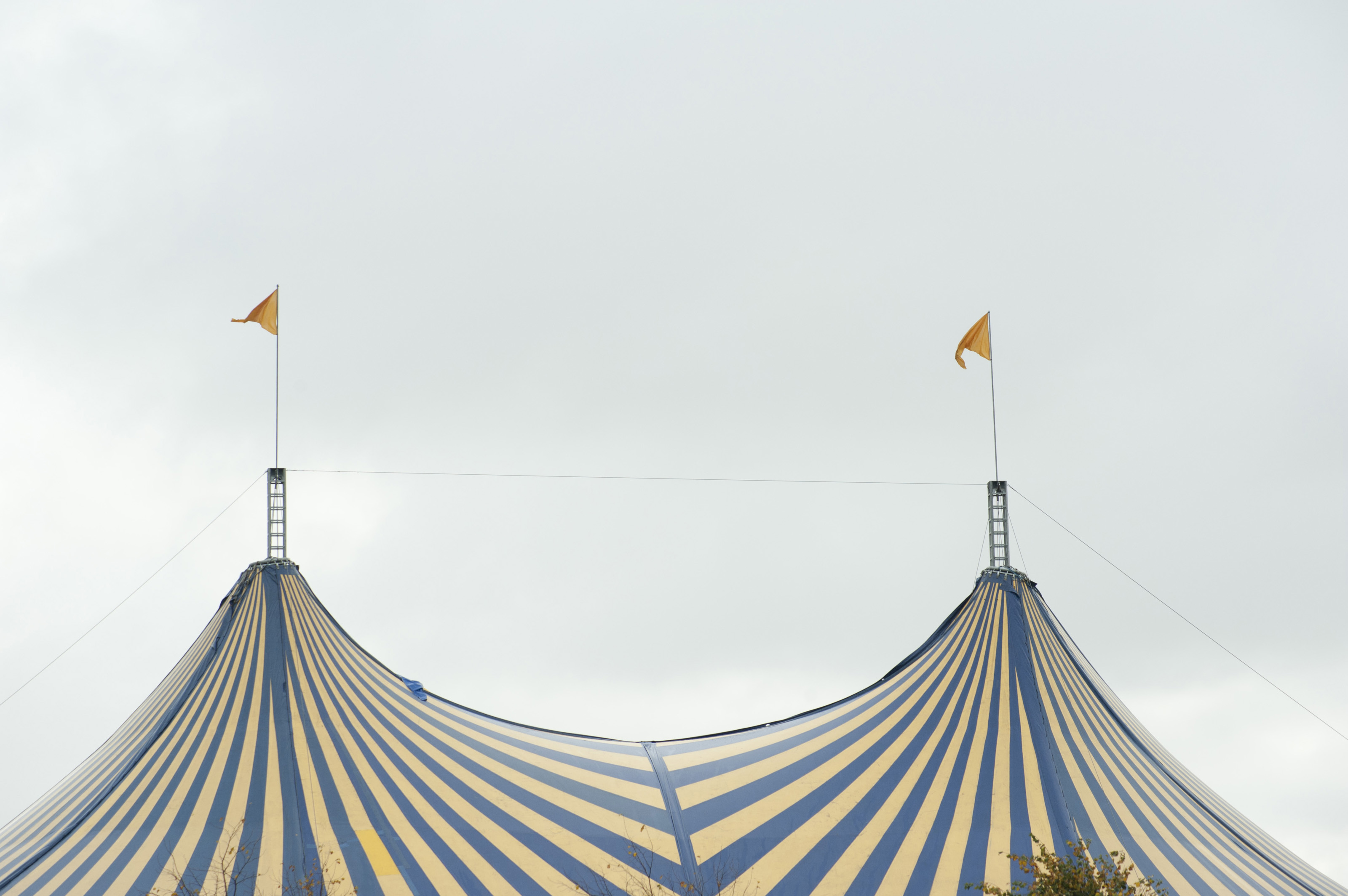 Keywords: acts, big top, canvas, circus, entertainment, marquis, performance, striped, tent, traveling, venue, flags, roof, top, tent poles, stripe, striped, stripes, yellow, blue