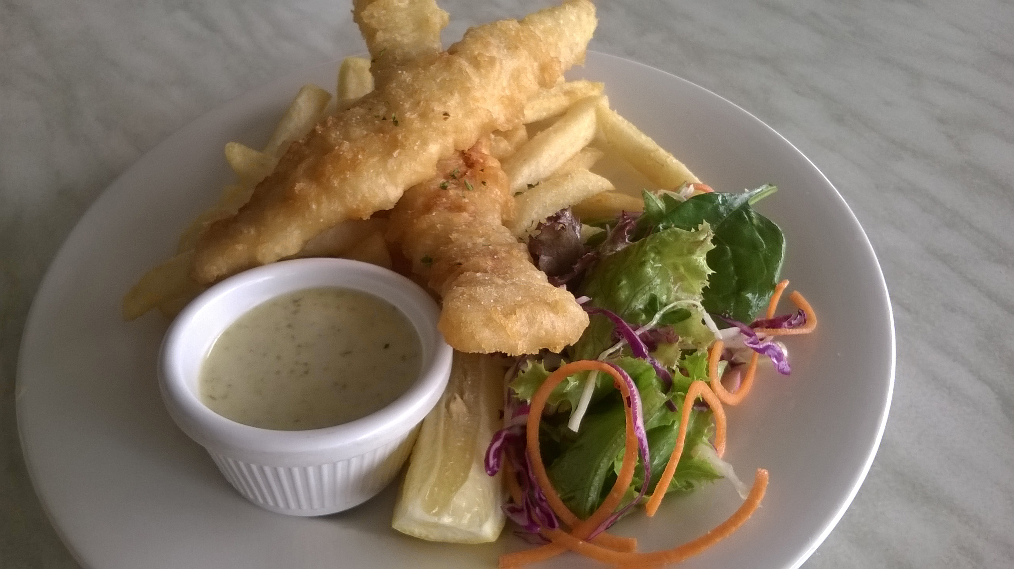 Keywords: chips, dinner, dip, fish, food, fried, lunch, meal, plate, salad, sauce, french fries, piece, traditional, above, pub food, pub lunch