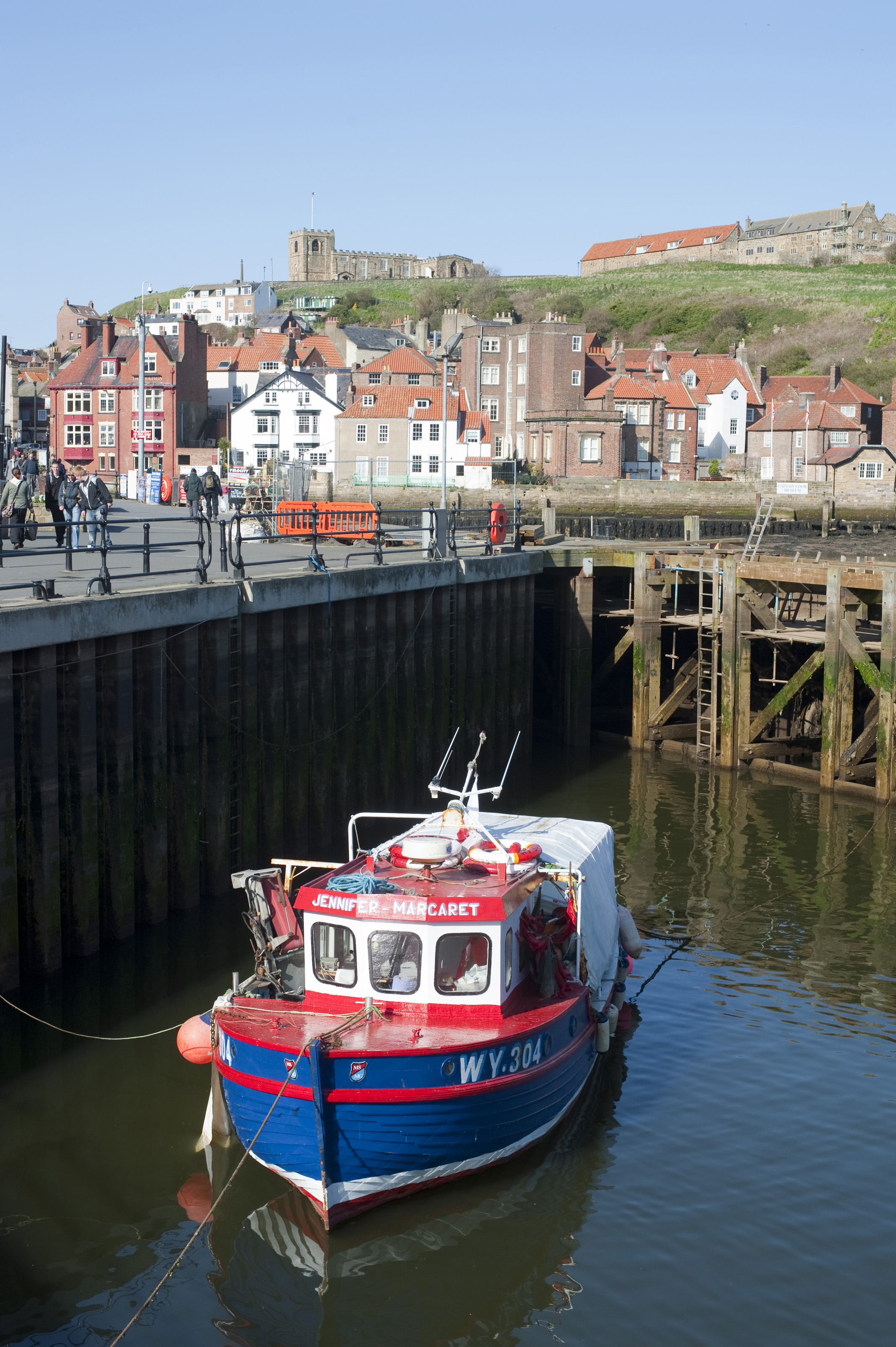 Keywords: whitby, north yorkshire, england, transport, architecture, wharf, waterfront, coastal, industry, boat, nautical, marine, fishing, vessel, harbour, quay, upper, moored, calm, town, st marys church, tate hill, travel, view, buildings