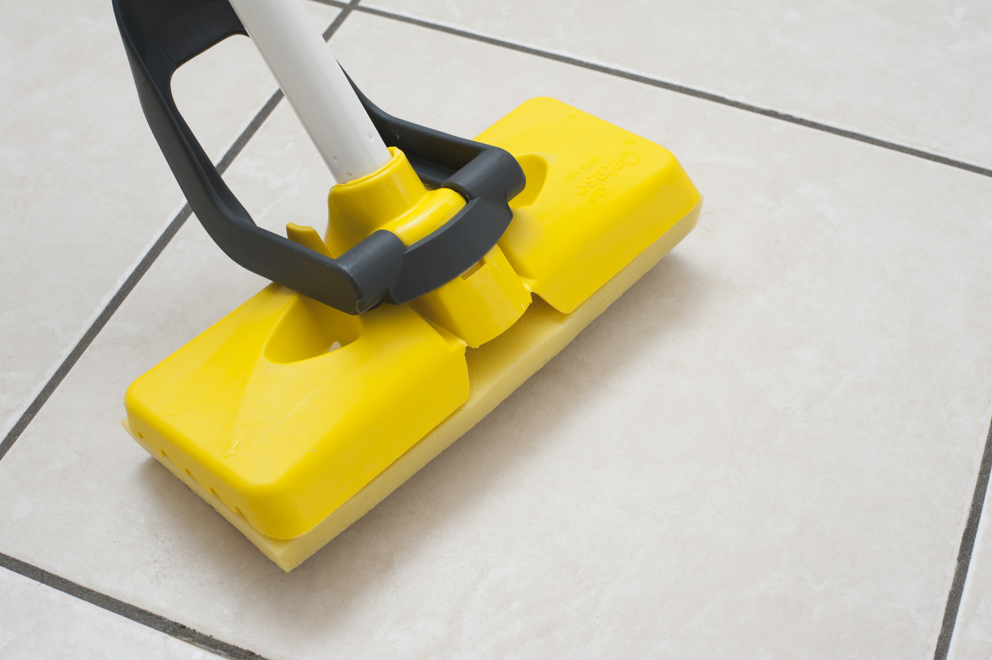Keywords: chores, cleaning, floor, household, hygiene, mop, mopping, squeegee, implement, kitchen, plastic, yellow, tile, washing, white