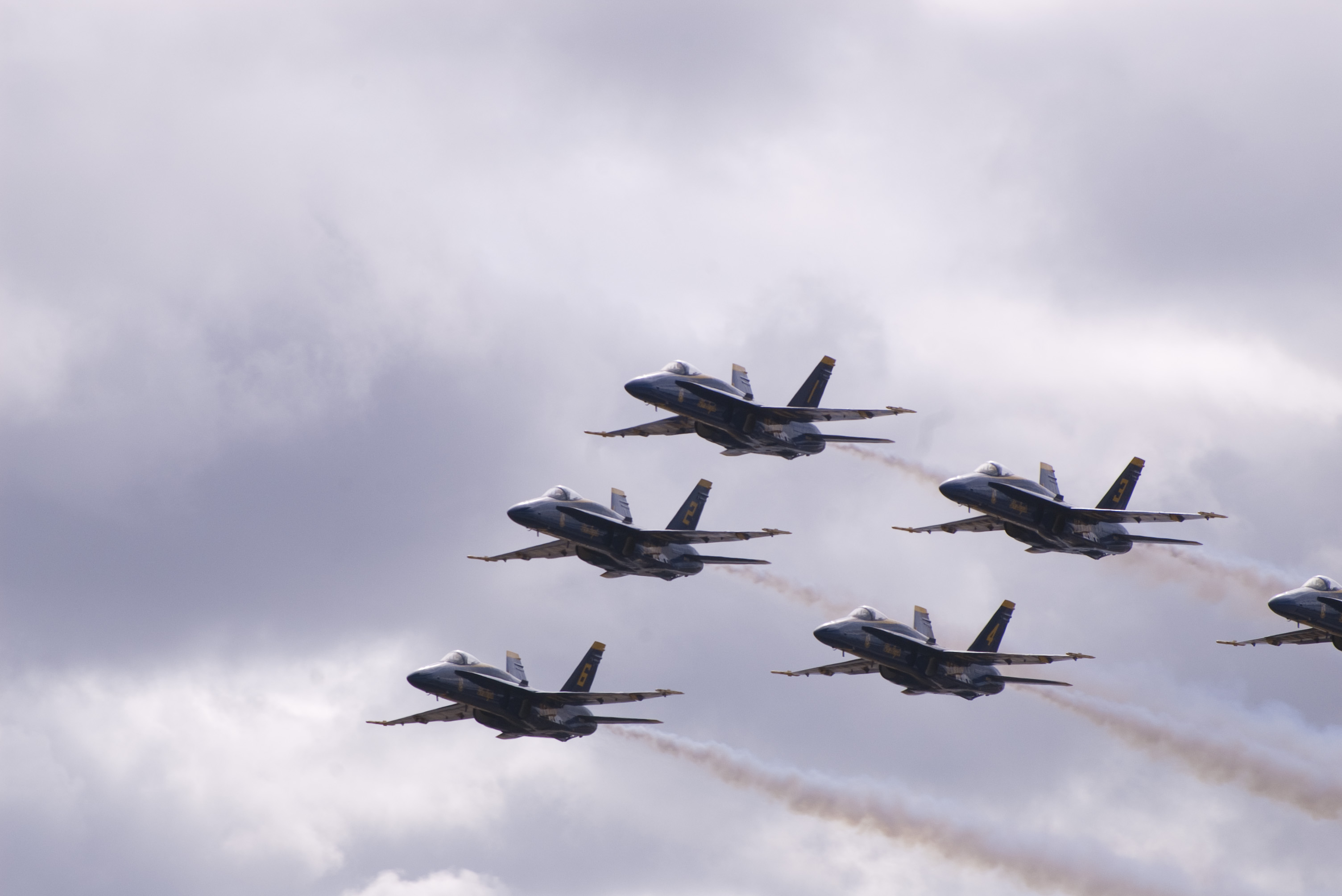 delta formation flying from a blue angels air display