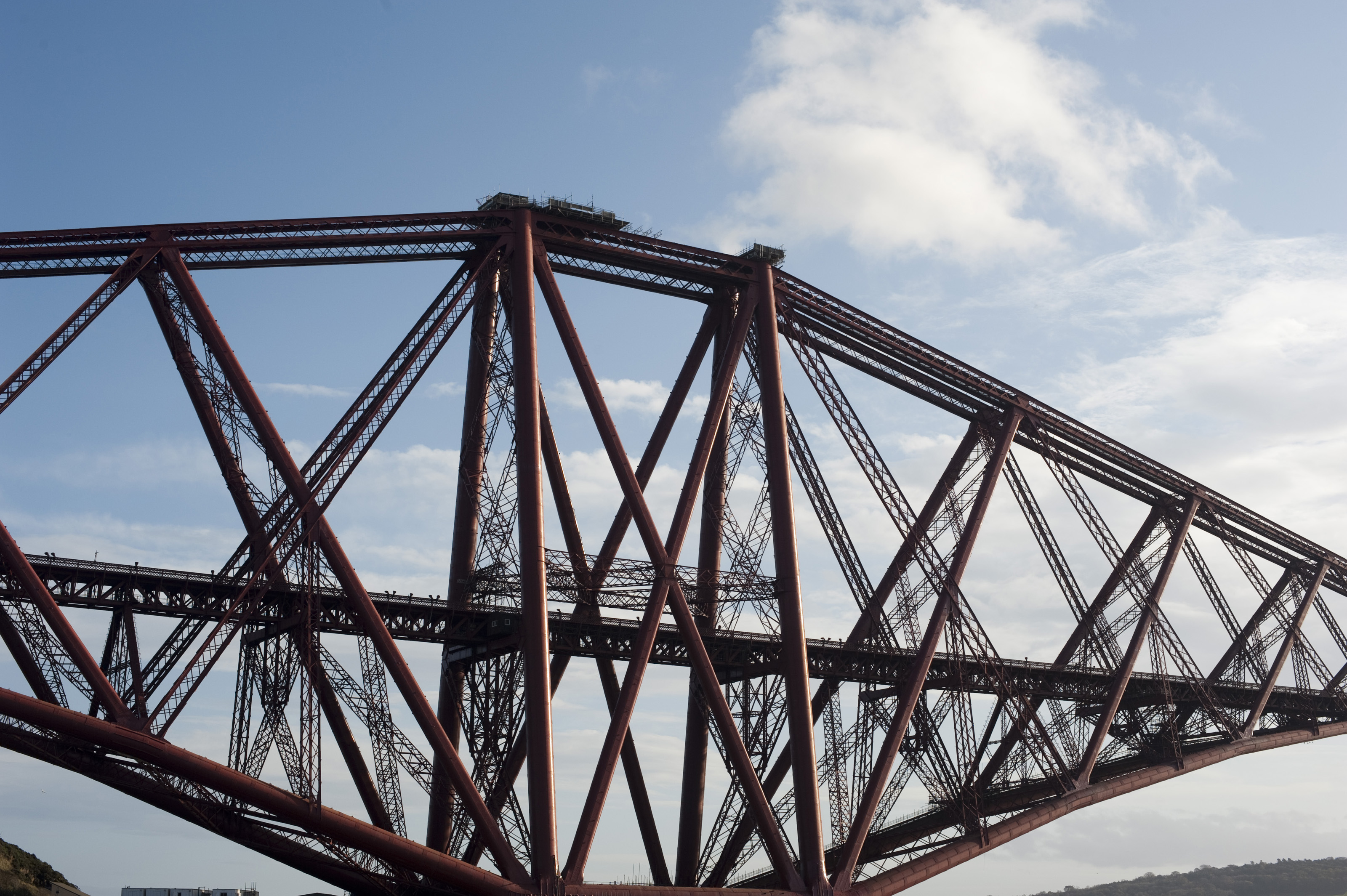 Keywords: edinburgh, scotland, forth bridge, forth rail bridge, metal, cross brace, cross braces, structure, steel, red, painted, engineered, engineering, plyon, tower, pier, repair, construction, truss