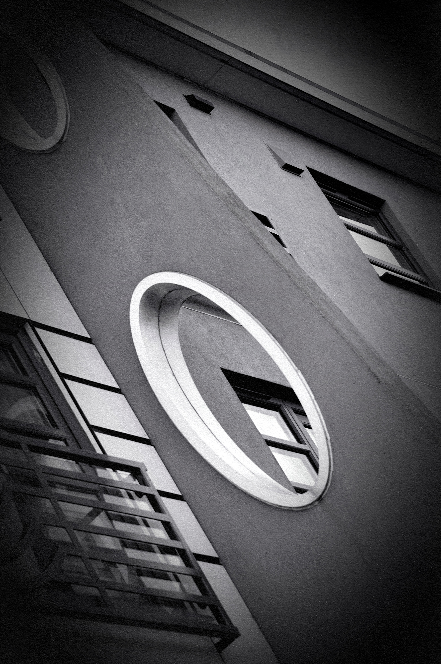 A black and white photo showing modern architecture in Blackpool