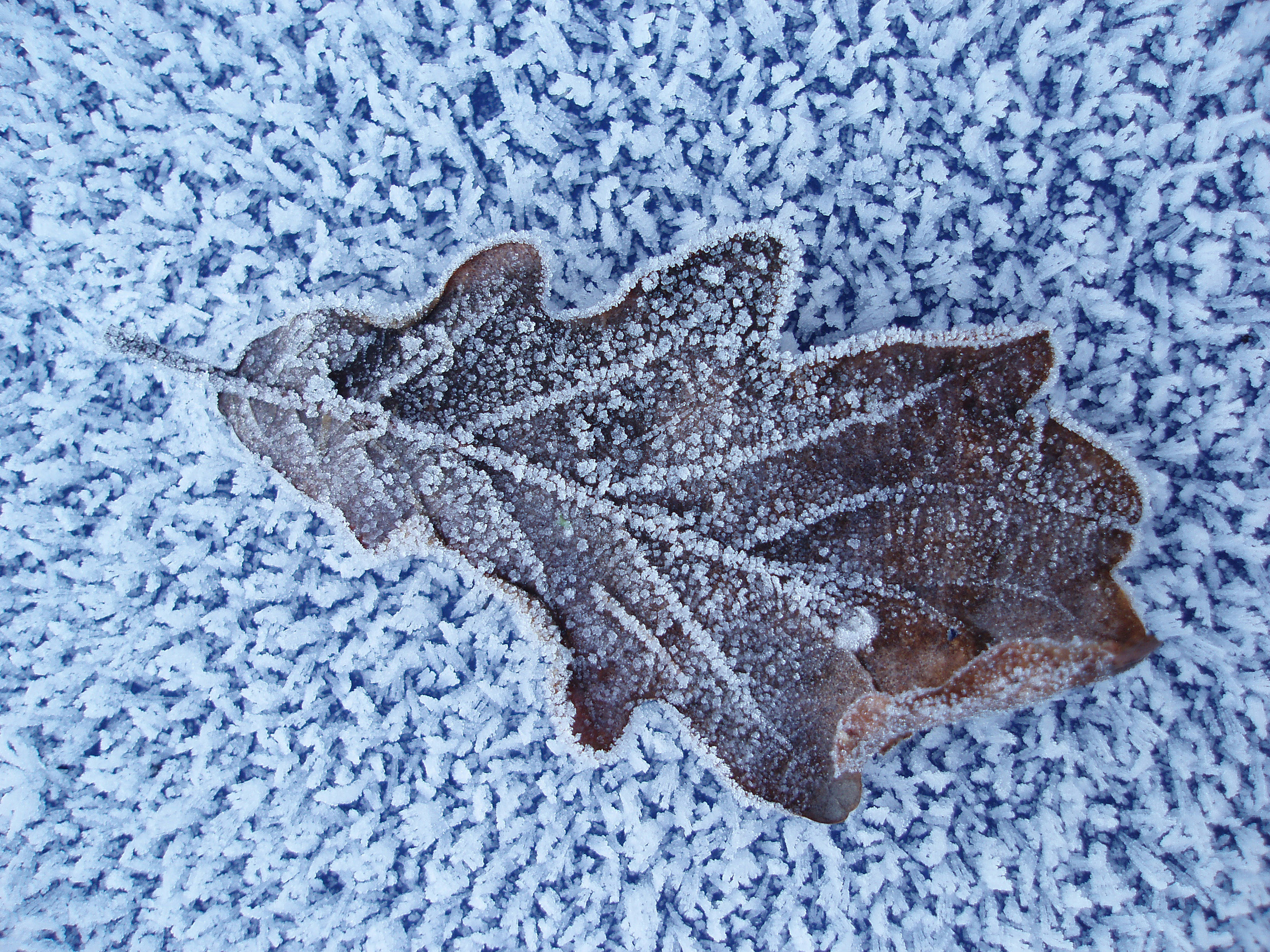 Keywords: cold, winter, frost, cold, ice, icy, frozen, oak leaf, leaf, brown, crispy, crisp