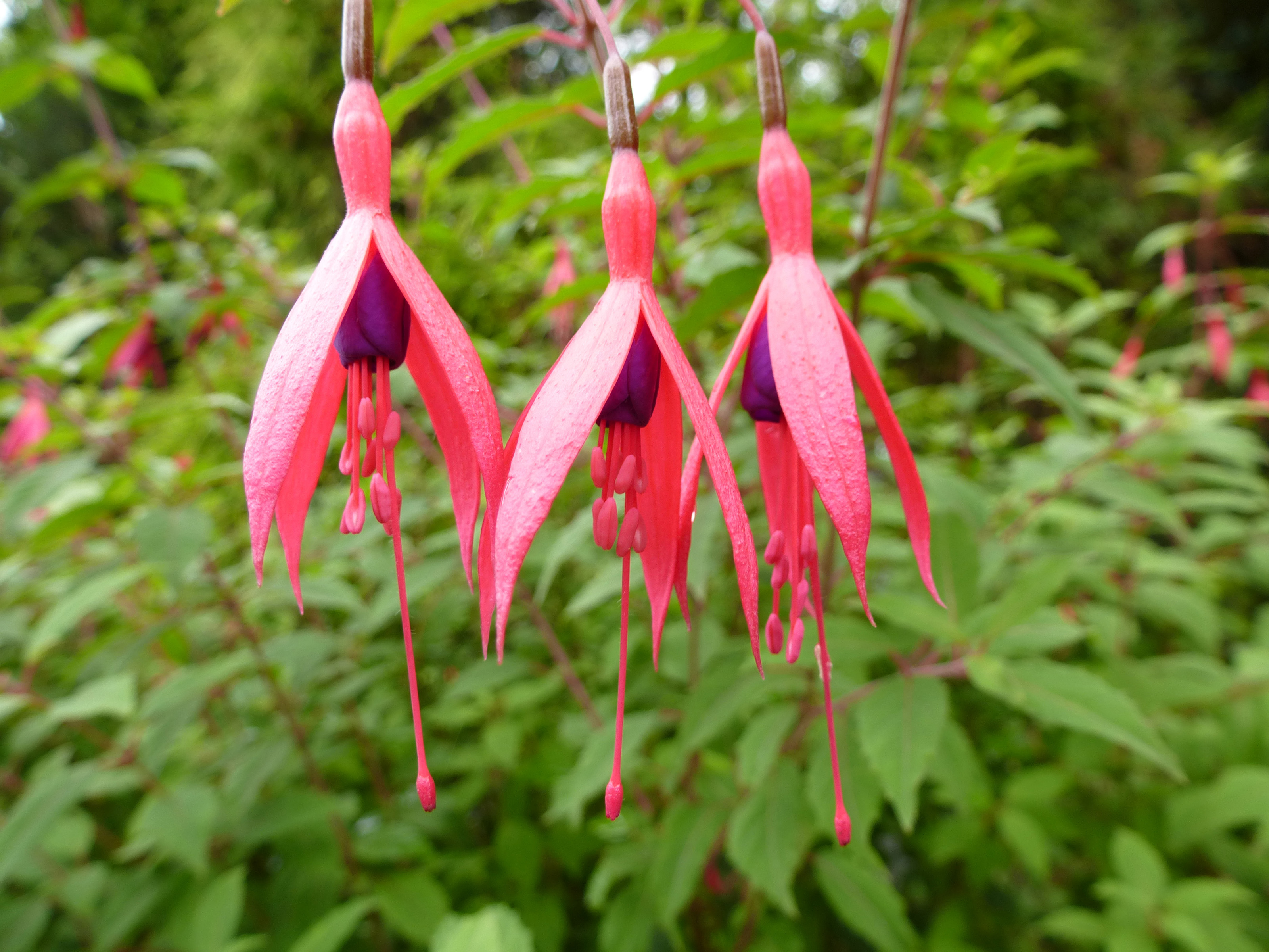 10947 Three hanging pink fuschia flowers - this image by freebie.photography is licensed under a Creative Commons Attribution 3.0 Unported License.