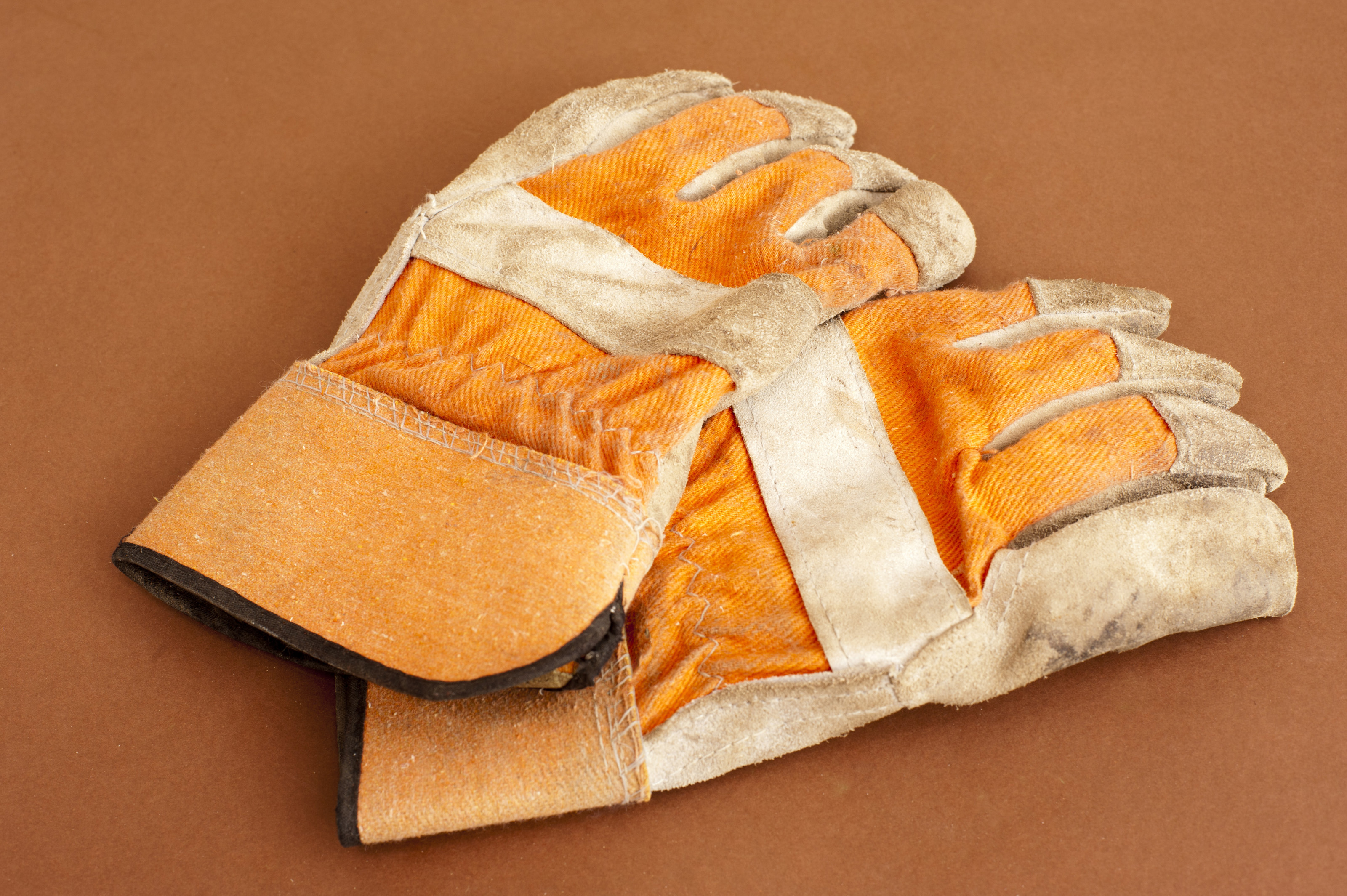 9851 Pair of gardening protection gloves, on orange - this image by gratuit is licensed under a Creative Commons Attribution 3.0 Unported License.