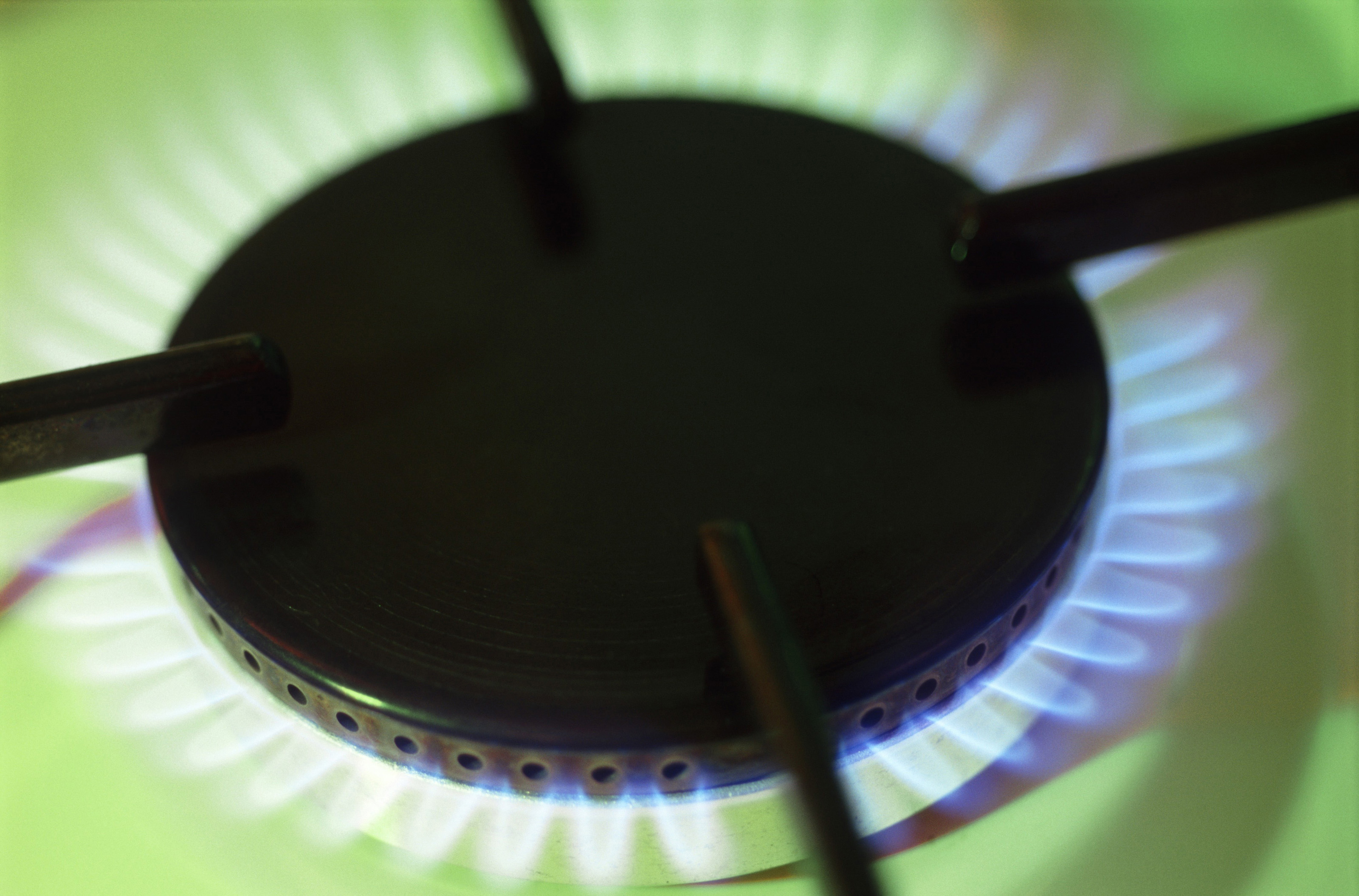 bright blue flames from a domestic cooker gas burner