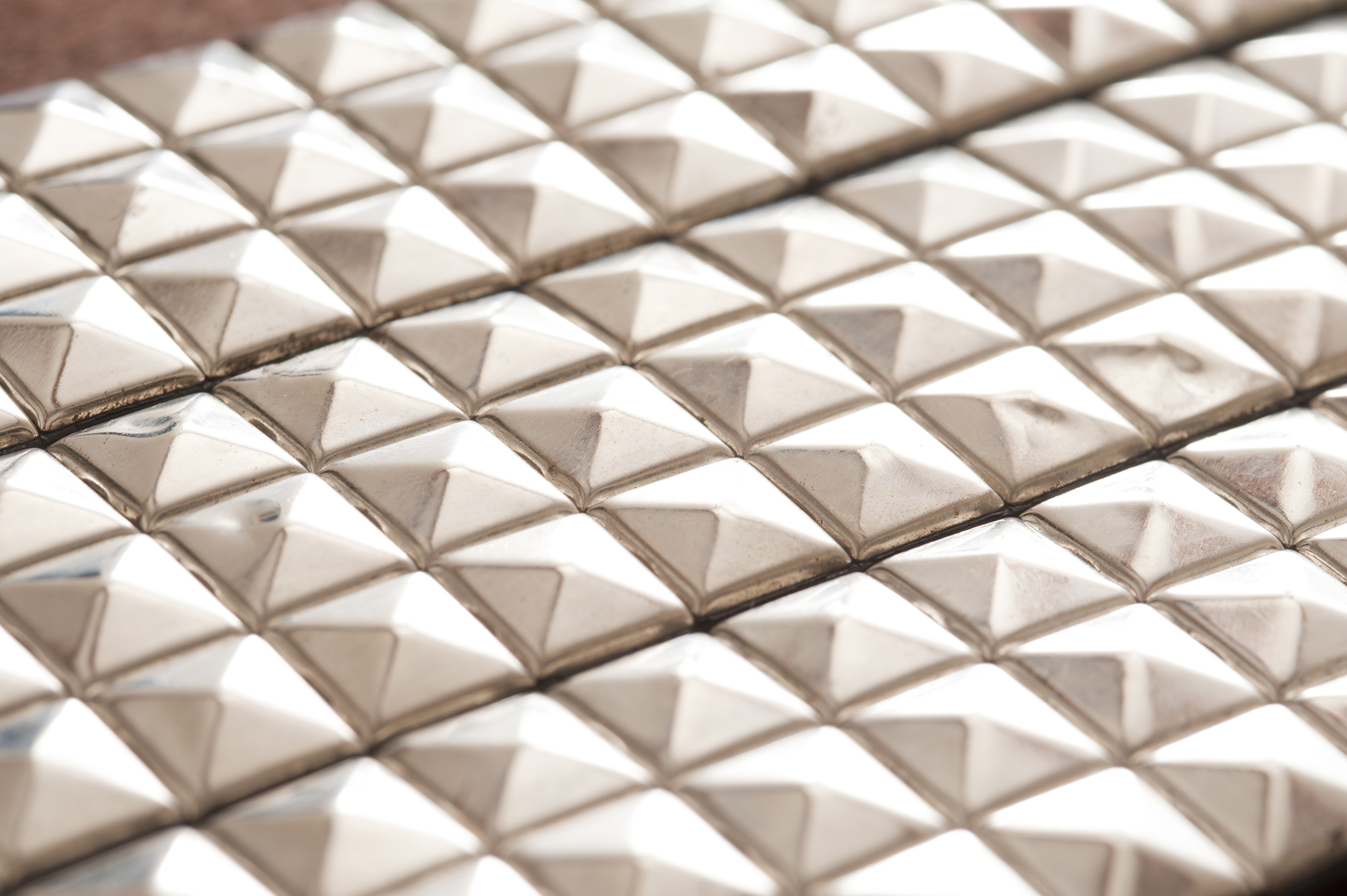 Keywords: angled, background, full frame, geometric, metal, pyramid, silver, squares, textile, shape, shiny, pattern, rows, metallic
