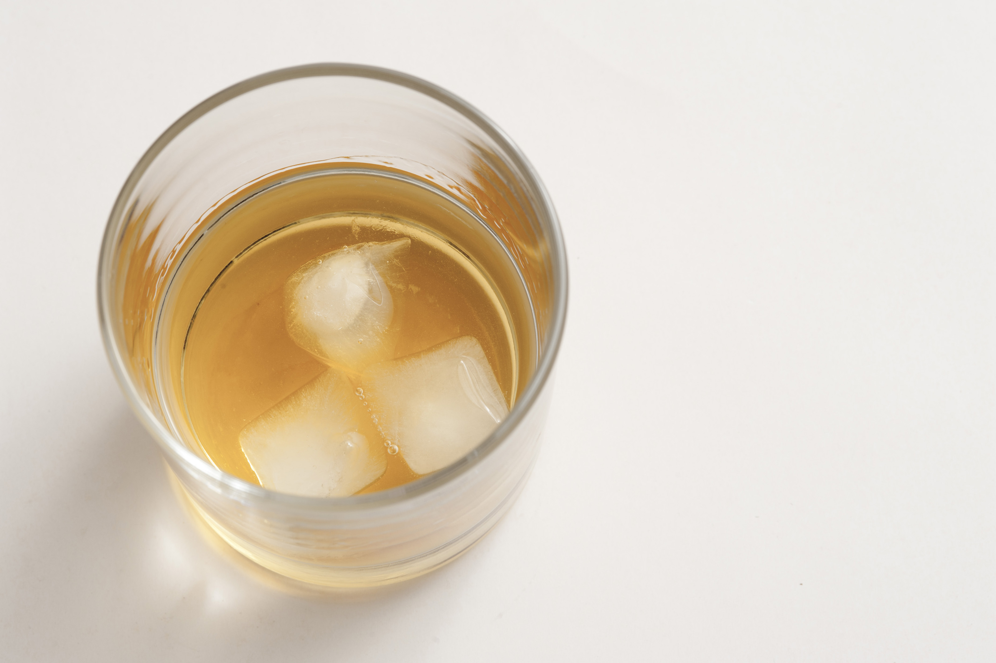 Keywords: alcohol, beverage, spirits, whiskey, glass, ice, on white, above, neat, tot