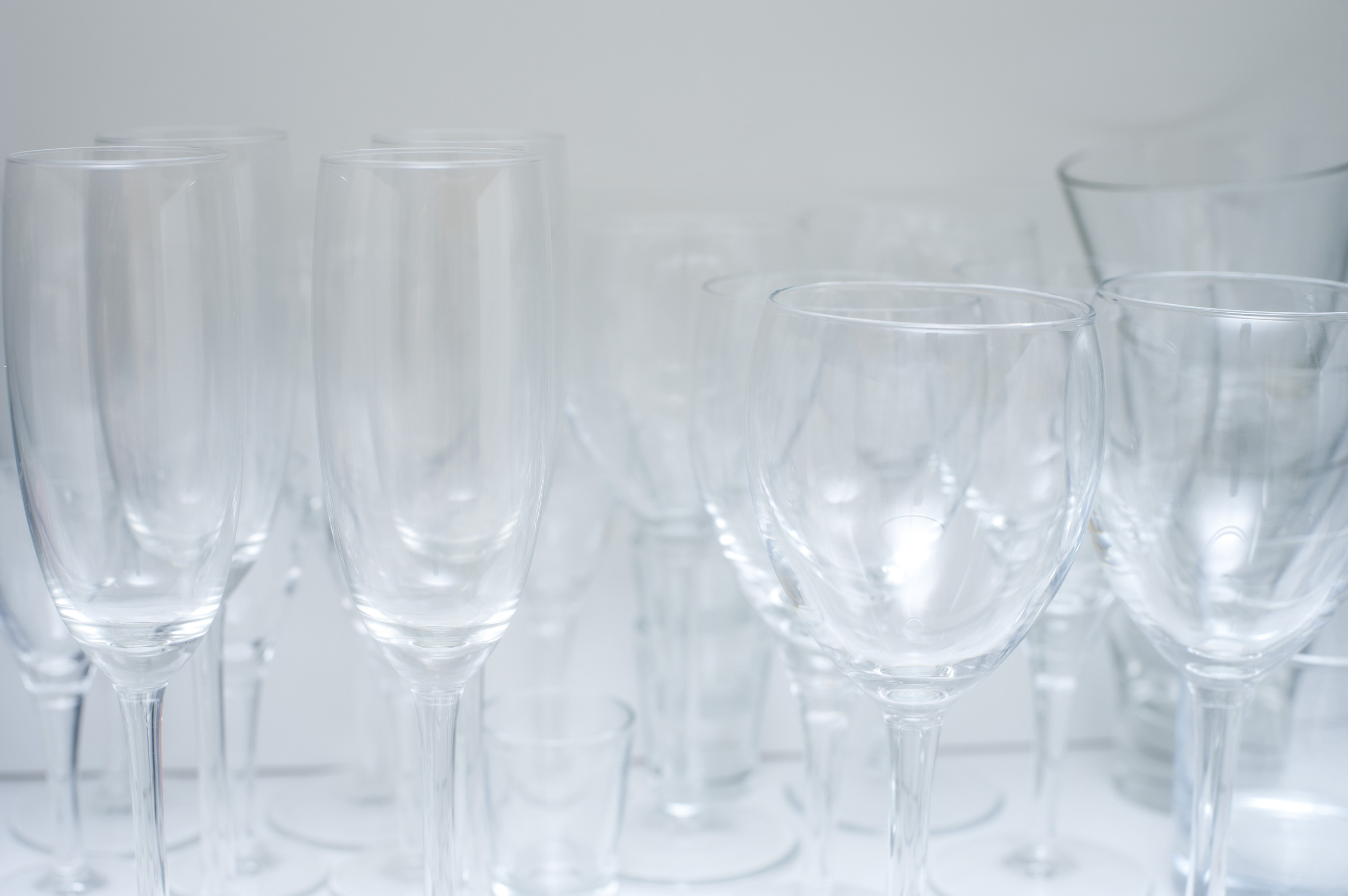 Keywords: transparent, container, clean, celebration, clear, beverage, drink, drinking, kitchen, glasses, serve, storage, wineglass, flute, shelf, tumbler, glassware, champagne, catering, kitchenware