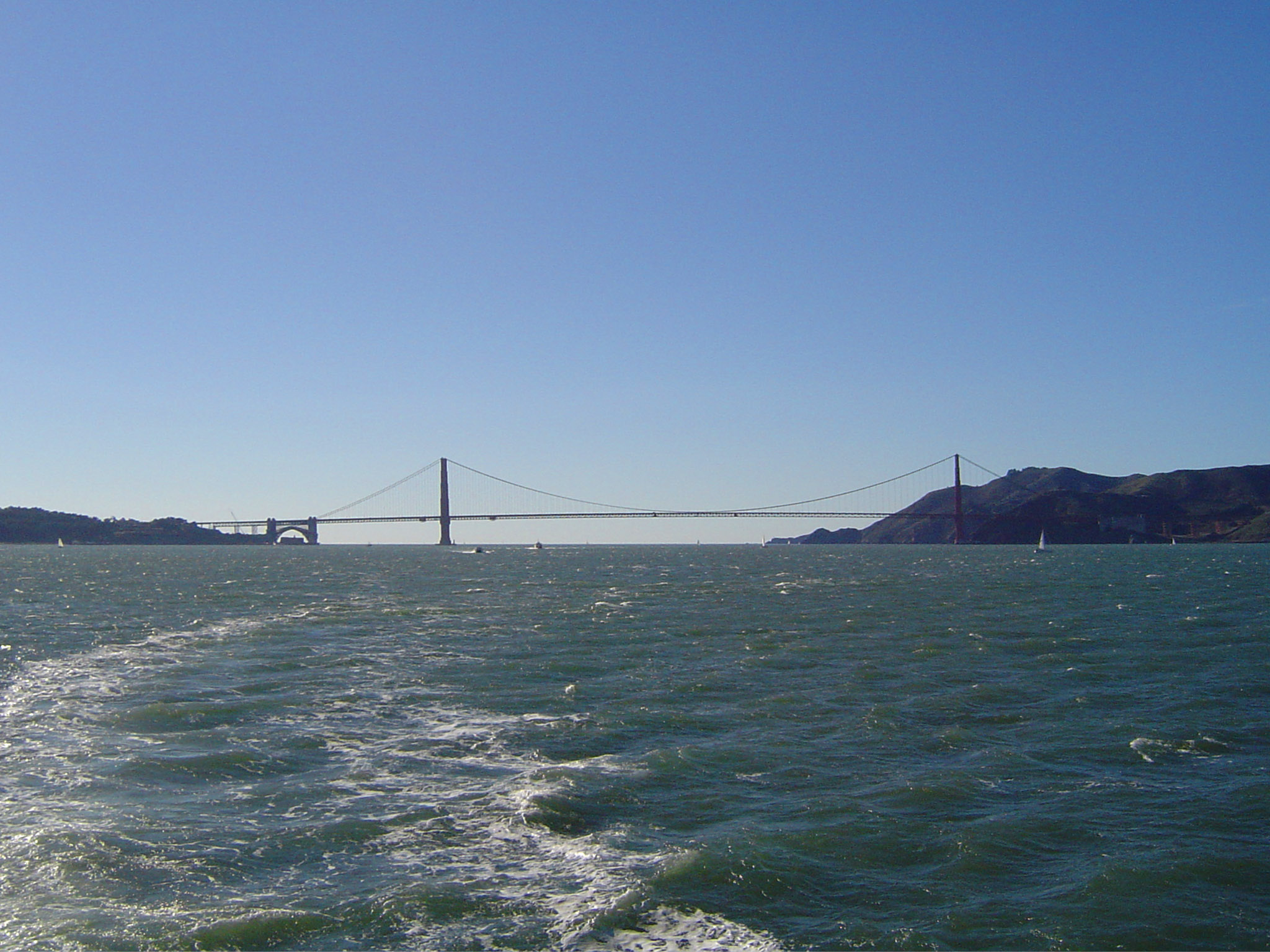 Keywords: boat, scenic, water, golden gate, bridge, crossing, suspension bridge